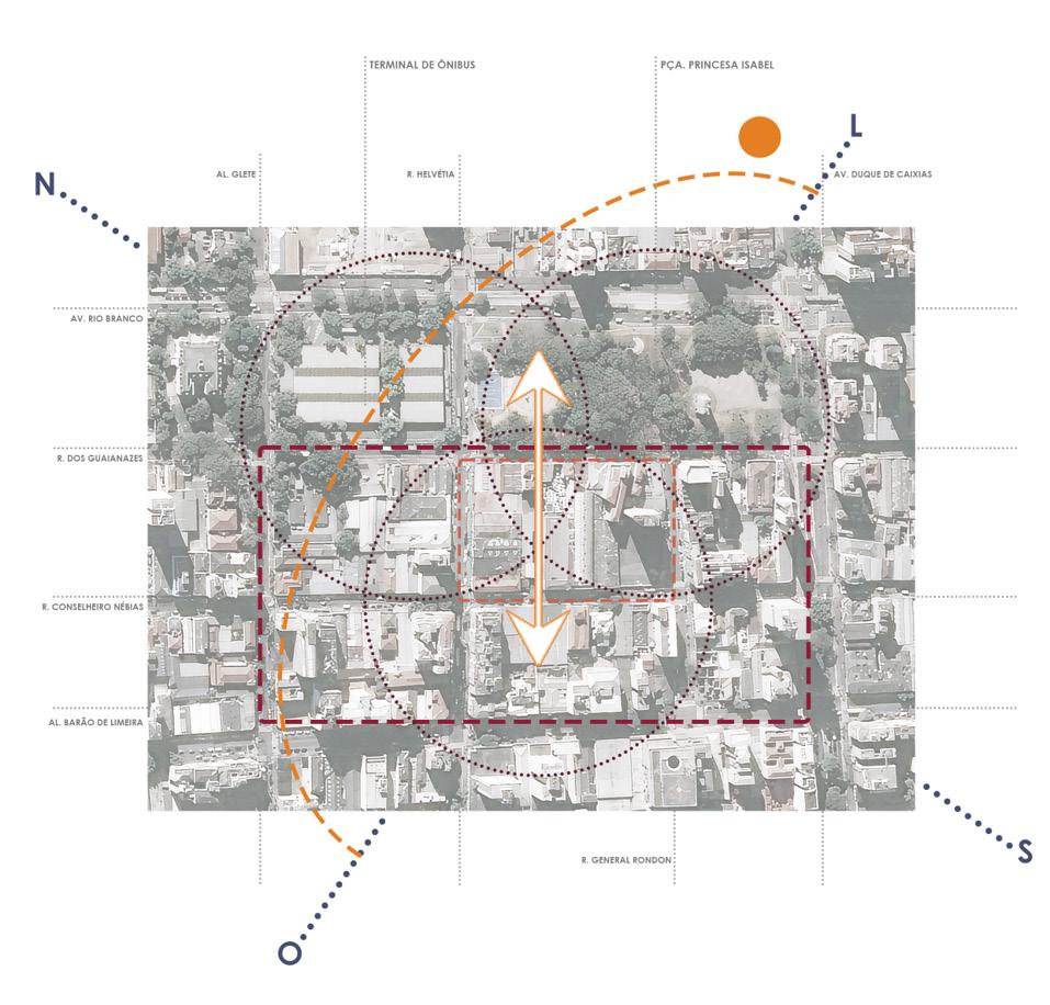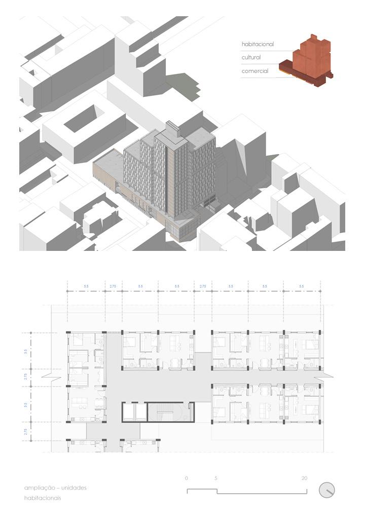 São Paulo enfrenta uma crise habitacional, enquanto pessoas vivem em situação de vulnerabilidade, existem inúmeros terrenos vazios e lotes subutilizados que poderiam abrigar HIS. Poranto, neste trabalho, desenvolveu-se um masterplan para a região dos Campos Elíseos, que teve como premissa o adensamento da área, de modo que os moradores e trabalhadores locais permanecessem no território durante e depois da aplicação do plano. Desenvolvido o masterplan, partiu-se para o exercício projetual, que teve como objeto um edifício multiuso com usos culturais, comerciais e habitacionais para diversos arranjos familiares, de modo a abrigar mais pessoas no centro da cidade.