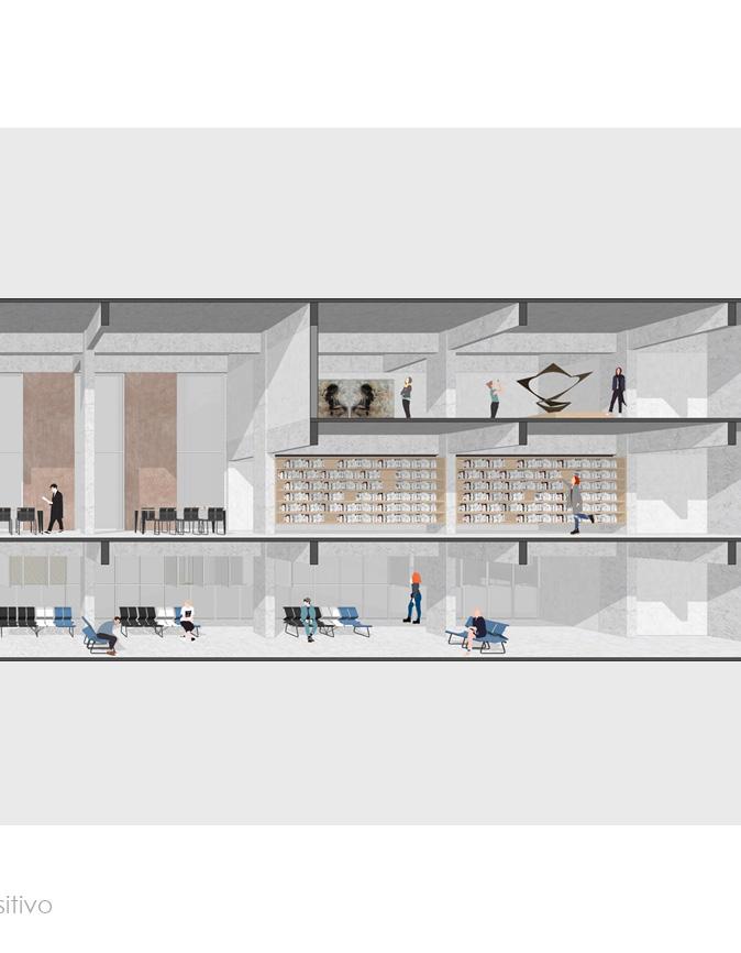 Neste projeto, realizado na disciplina de Interiores, o objetivo foi propor a adequação de usos do Instituto de Arquitetura do Brasil para receber um acervo capaz de arquivar desenhos técnicos, pranchas e croquis de variados projetos de arquitetas e arquitetos do país. Para isso, quatro andares do IAB foram reservados para abrigar: um café, área de exposições e palestras, área de acervo e consultas, além de áreas técnicas voltadas ao restauro e reparos dos desenhos. Priorizou-se um layout que garantisse a melhor circulação e disposição de mobiliário nos andares do acervo e procurou-se manter atividades que já aconteciam no local nos mesmos ambientes, como a área do café e exposições.