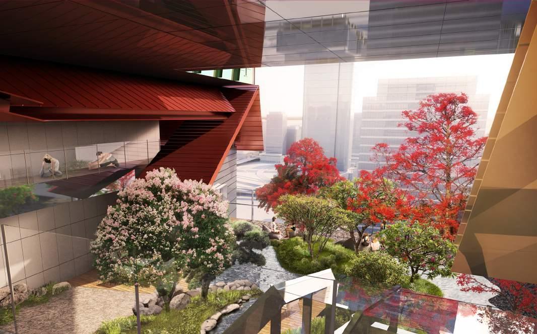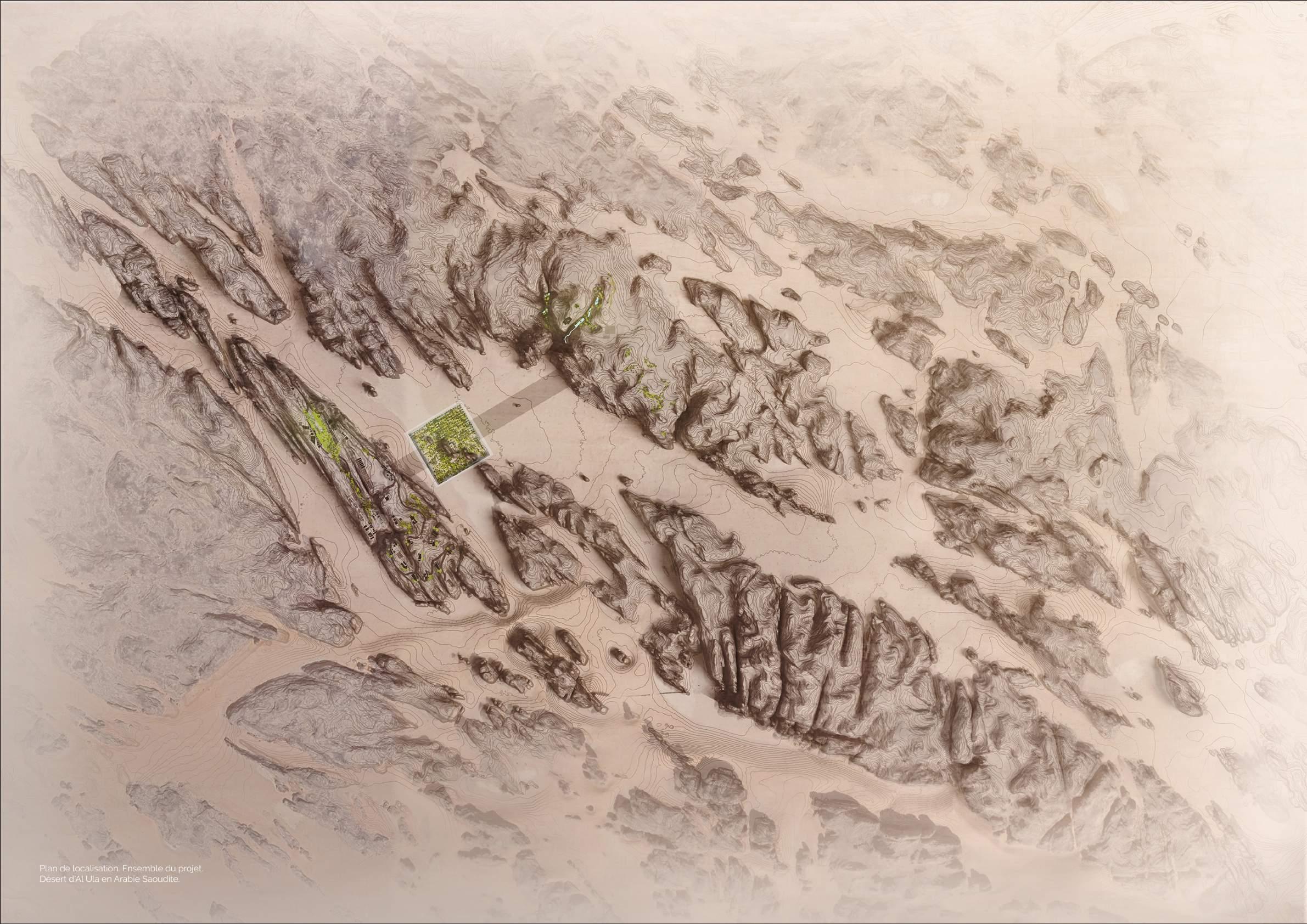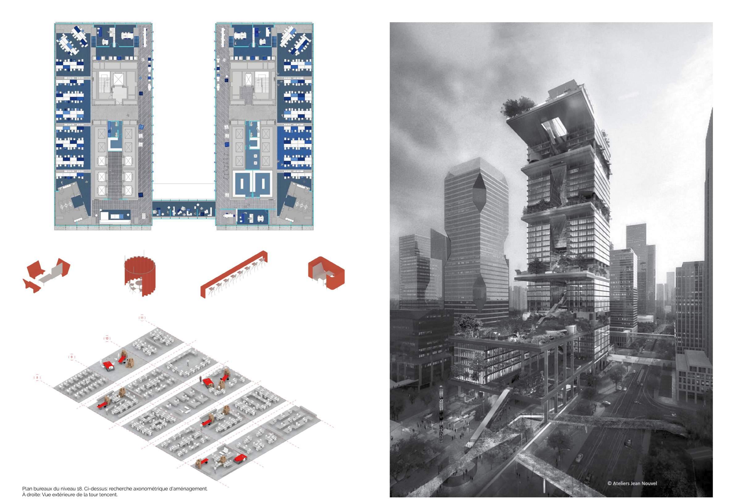 Ci-dessus: plan général. À droite: vue intérieure du projet.
