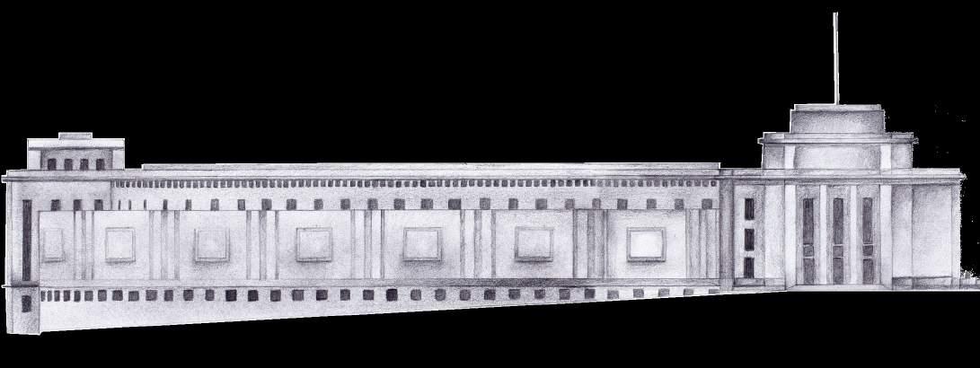 Ci-dessus: Relevé a la main de la façade nord du Palais de Chaillot à Paris. En suite: Affiche “Pachatopias” et collage digital.