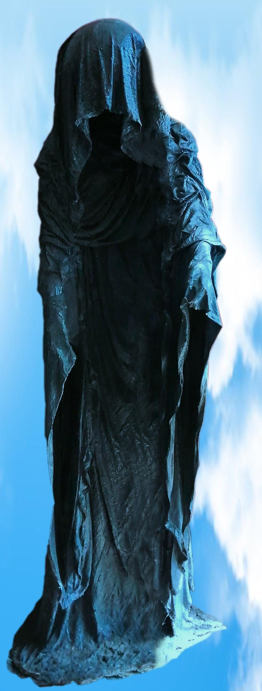 encuentro. La figura llevaba puesta una capa o túnica que le cubría desde la cabeza a los pies. Juan le dijo a su mujer: “Intentaré tocarlo, de ese modo sabremos si es real”. Se acercó y escudriñó su rostro, tenía unos ojos brillantes y maliciosos, profundamente hundidos en su cabeza. Parecía un esqueleto por la delgadez de su cuerpo. Juan echó una mirada y dio, un fuerte grito, y de nuevo él y Marta corrieron, pero esta vez el vagabundo los siguió. Cuando llegaron a casa del matrimonio, permanecieron frente a la puerta y lo observaron.