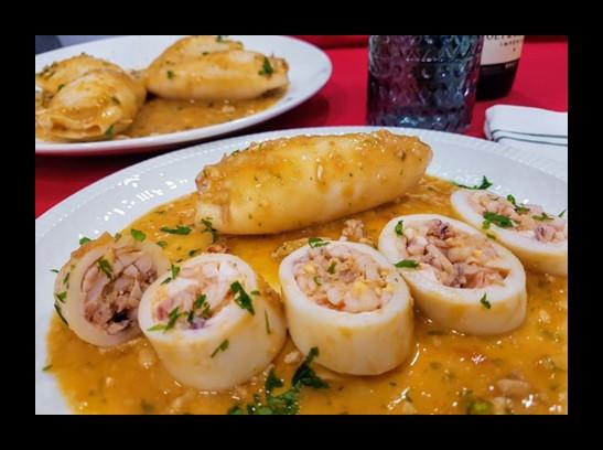 Dejamos enfriar y rellenamos los calamares.