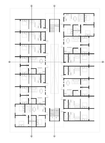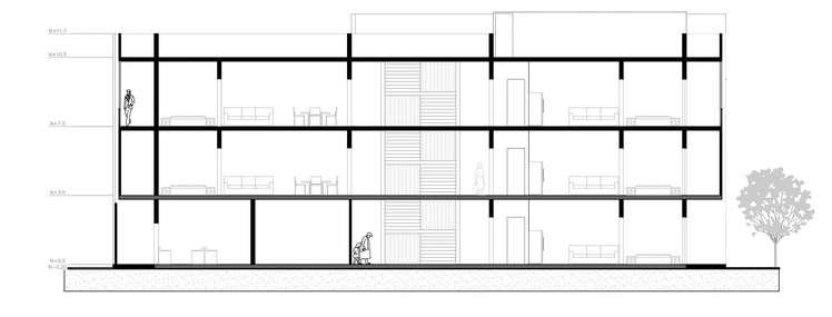 Bloque 5 has a total of 35 apartments of 4 different types to offer a variety of options according to the users needs Type number 4 has an area that can function as a commercial space The building has a bicycle parking, rooftop, concept store, gym and laundry