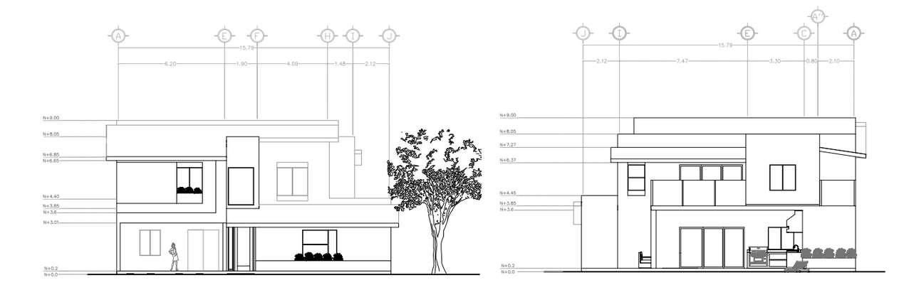 The house was designed with the different needs of each of its users in mind, which is why the floor plan includes a bedroom on the first level for the elderly person, as well as a home office and two bedrooms on the upper floor, spacious living rooms on both levels and outside All of the bedrooms have their own bathroom and walk-in closet
