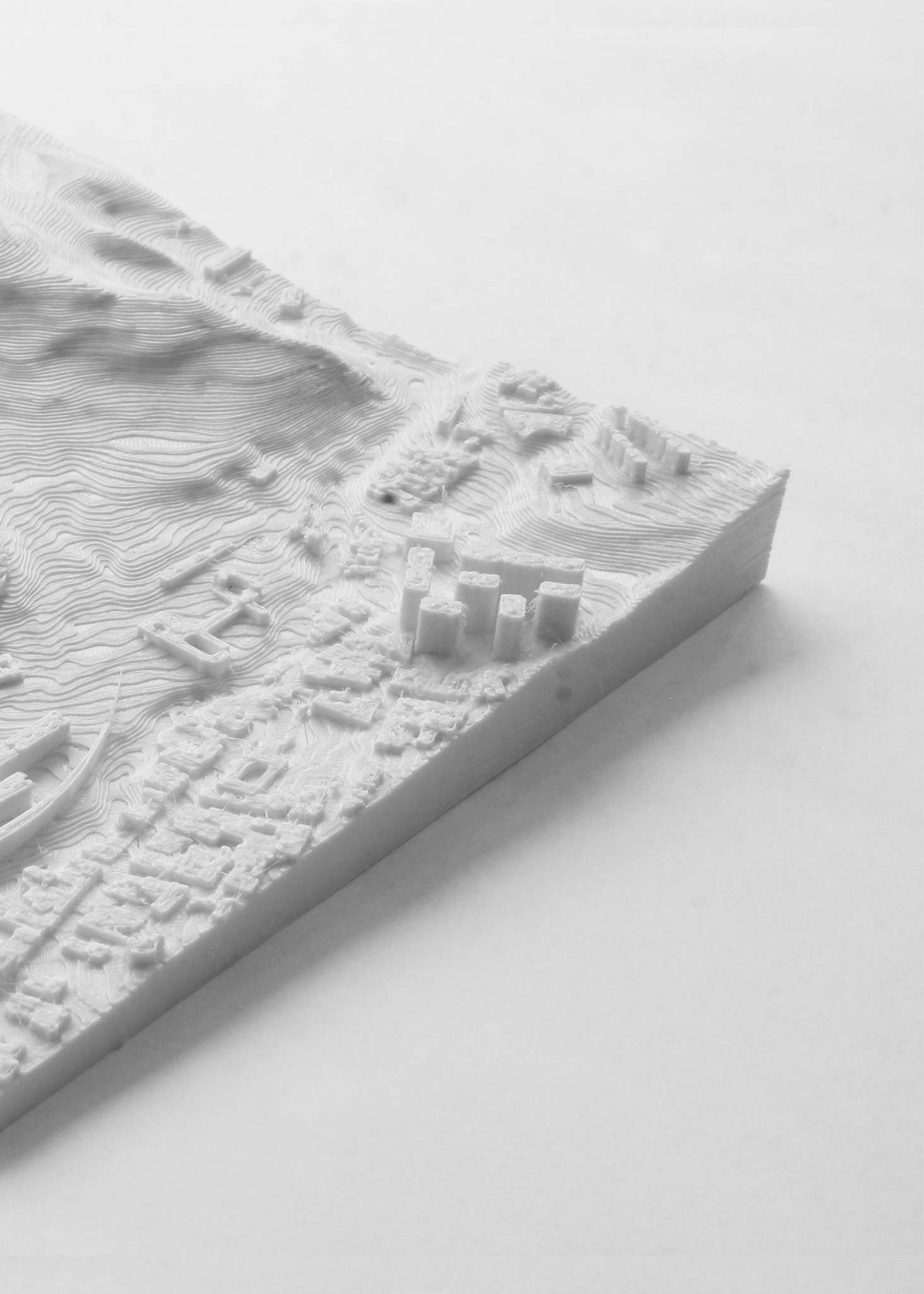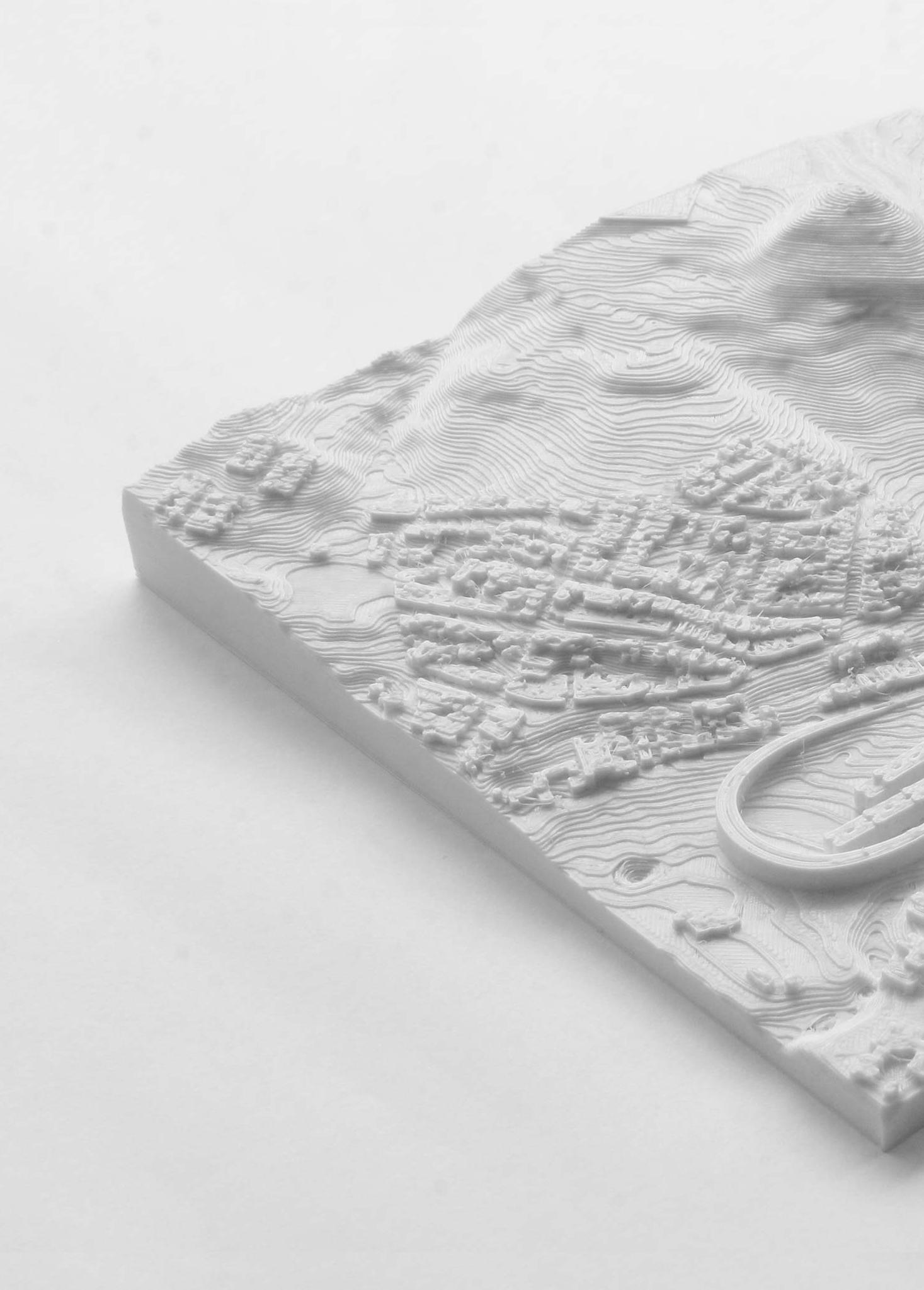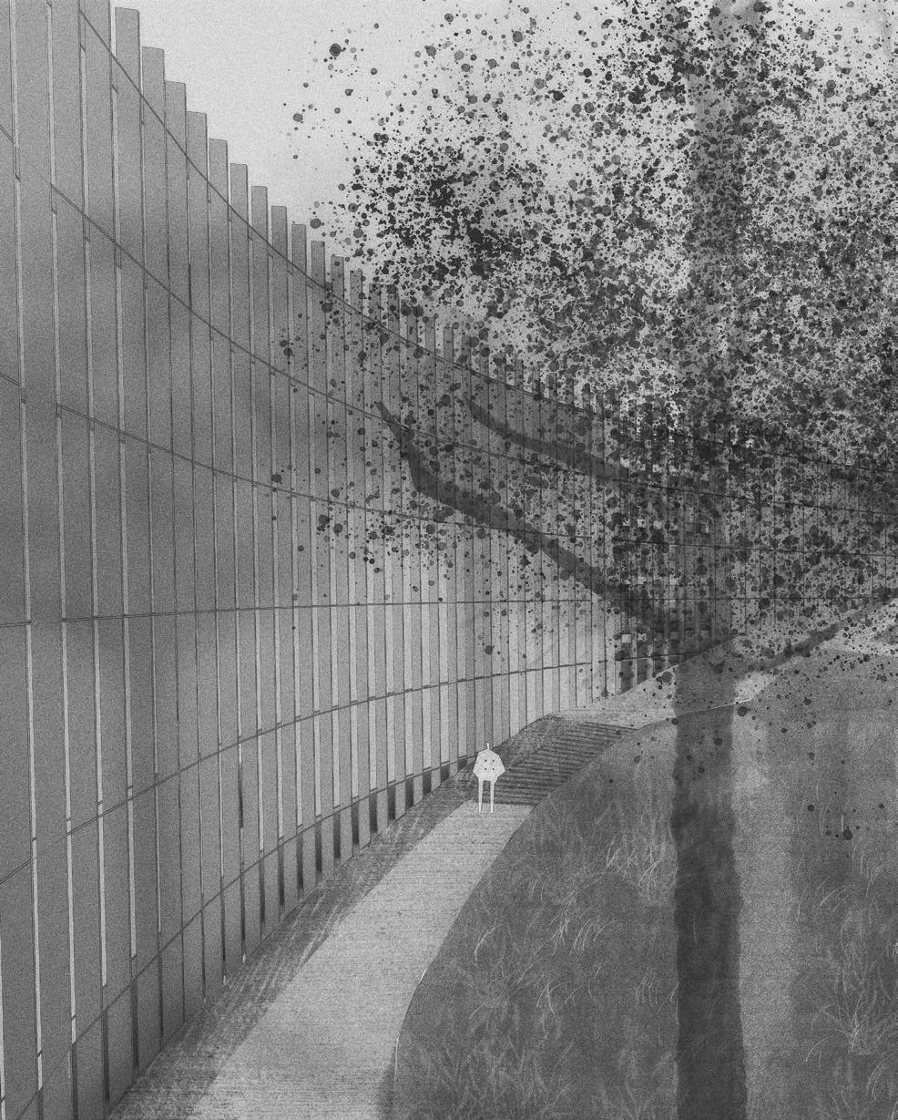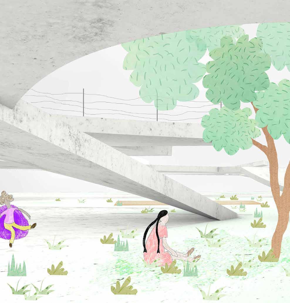 The project aims to enclose a key location for mountain access to the city. In 1953, there once stood a lake until drying up by 2002, and is now occupied by two residential buildings. The intervention seeks to respect this 70 year evolution and include the adaptations as part of the dynamic history and symbiotic relationship between the mountains and city. For example, the residential buildings are preserved, and a body of water is created, paying homage to the lake that once existed there.