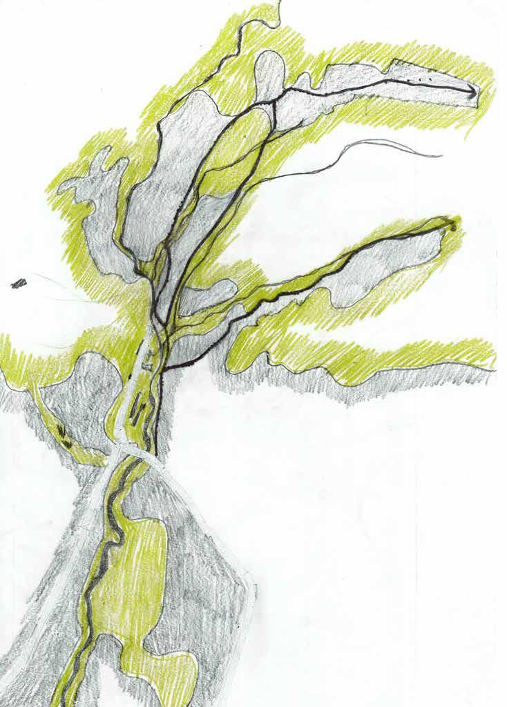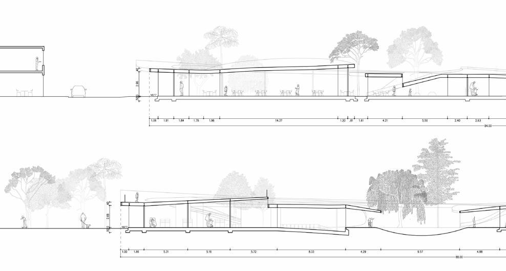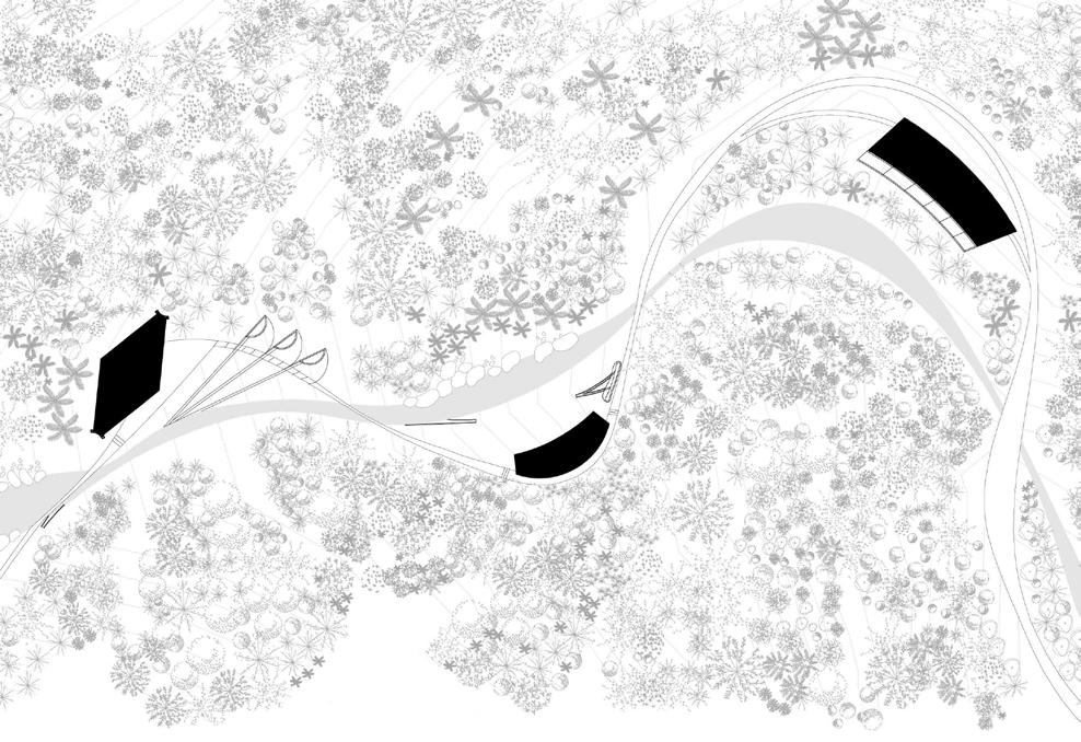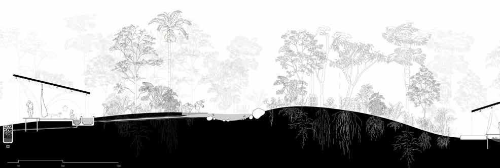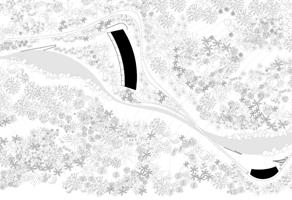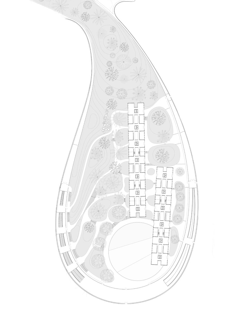 Ultimately, the college can be reduced to a series of showers, bathrooms, and laundry. However, these speak about water and its role in these care rituals. The projectproposes to connect the college to a large creek that crosses the campus. The goal is to collect, use, clean, and return water to its course. In this way, the college becomes part of the creek’s flow, a key teaching of the indigenous Inga tribes.