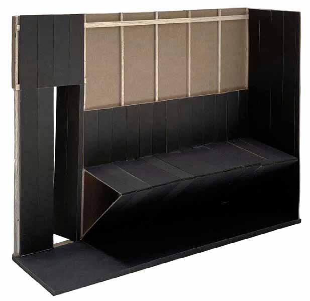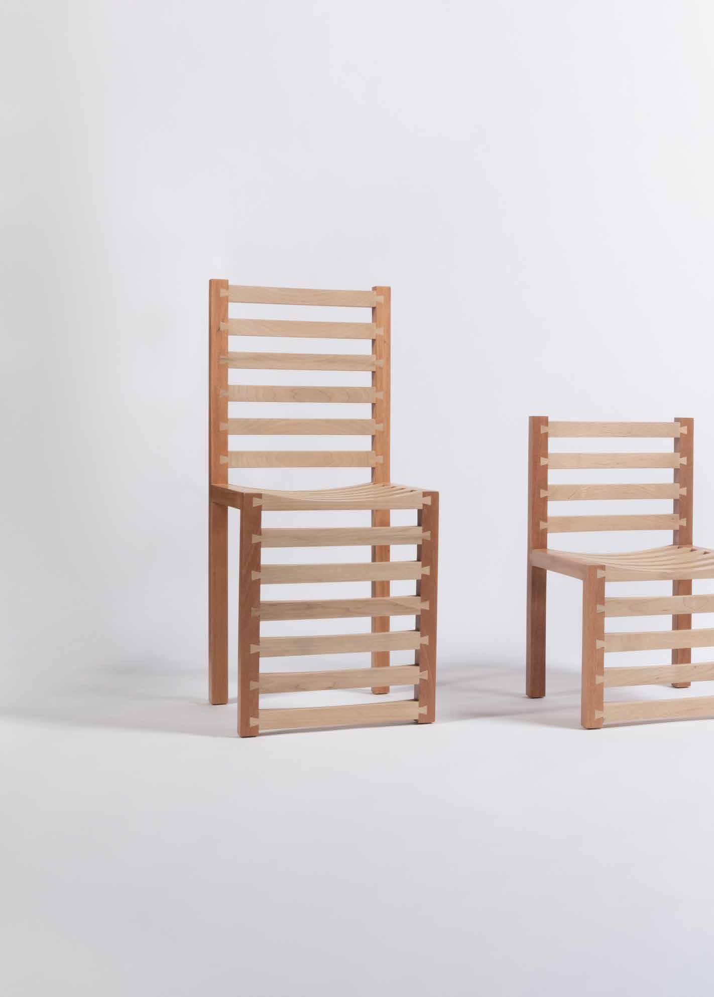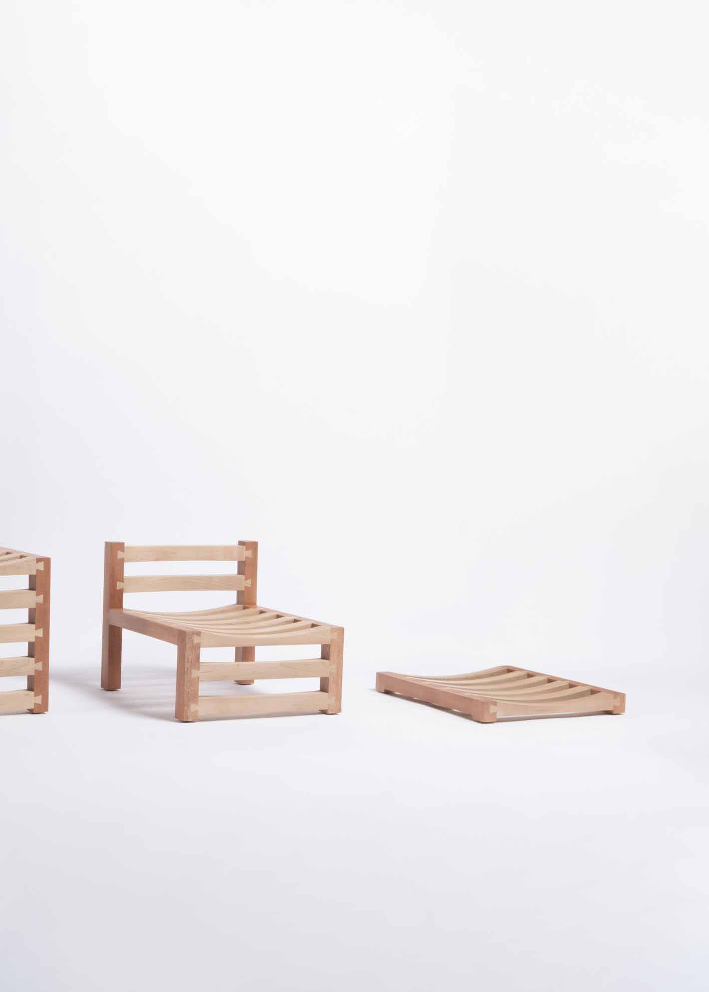 The resulting pieces vary from 4” to 13”, 21”, and 30” in total height, each able to perform diverse functions. Apart from four surfaces for sitting, this group invites you to imagine a side table, a footstep, a magazine rack, and a high chair. The pieces will be fabricated in two types of wood for color contrast, mahogany and maple. A Family of 4 reinvents a Latin American classic chair trying to blur its programmatic limits. (Lanza Atelier, 2023)