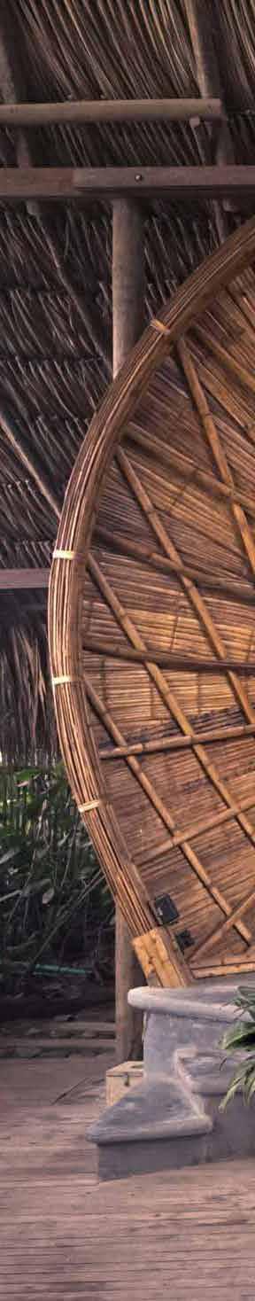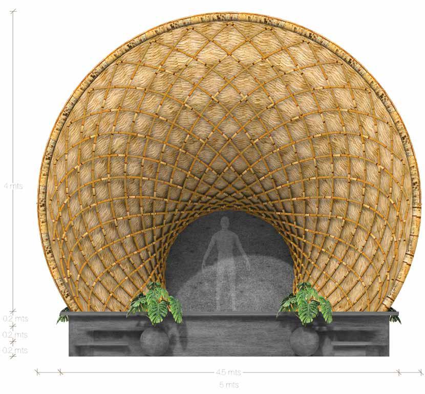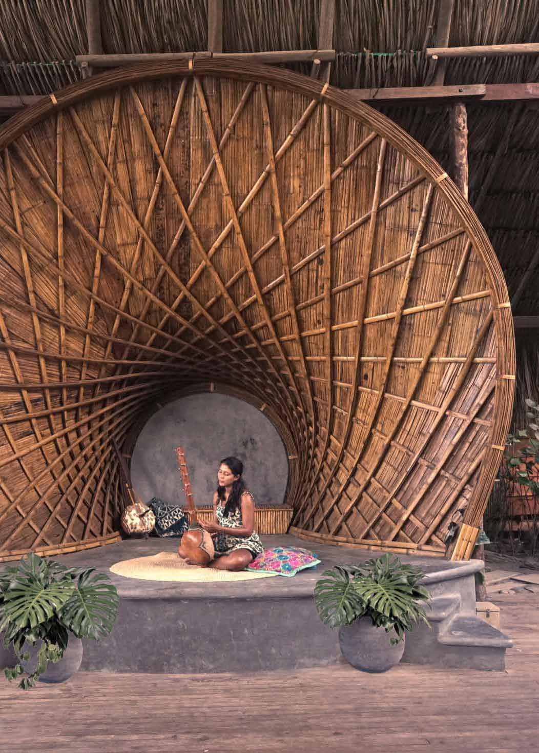 The design of this small beach theater, mainly used for parties and concerts, was based on the structure of a horn. Its structure helps amplify the sound generated within it. Visually, the bamboo helps to create the feeling of waves, almost as if one could see the sound.