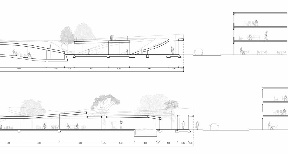 The roof creates the idea of a landscape that, varying in height, configures spaces for children or elders.