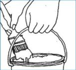 LAVANDO CON SOLUCION DE CLORO, AGUA Y UN CEPILLO