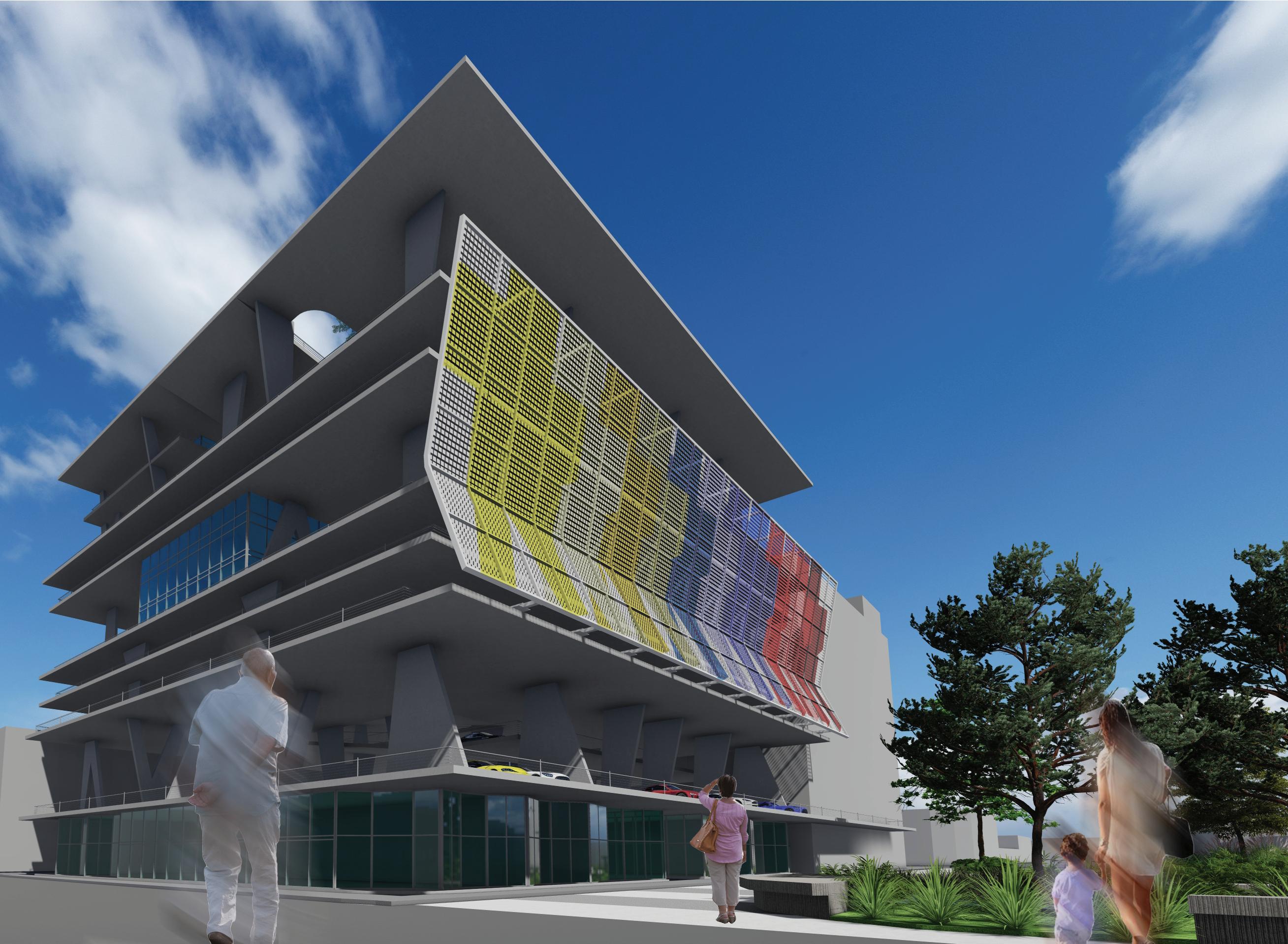 Kinetic Hues is inspired by Wassily Kandinsky’s painting, Colored Sticks. working with Matthew Sebiri, we created a shading and auditory screen that enhances the views, sounds, and aesthetic of the 1111 lincoln road garage. The study of the colors and sticks, led to a motor driven structure while the study of structure and void focused on the creation of space and shade. The merging of both these studies paved the way to a model of color and reflection that moves in accordance to the wind circulation. Kinetic Hues is a free flowing spectacle to eyes inside Lincoln 1111 and beyond.