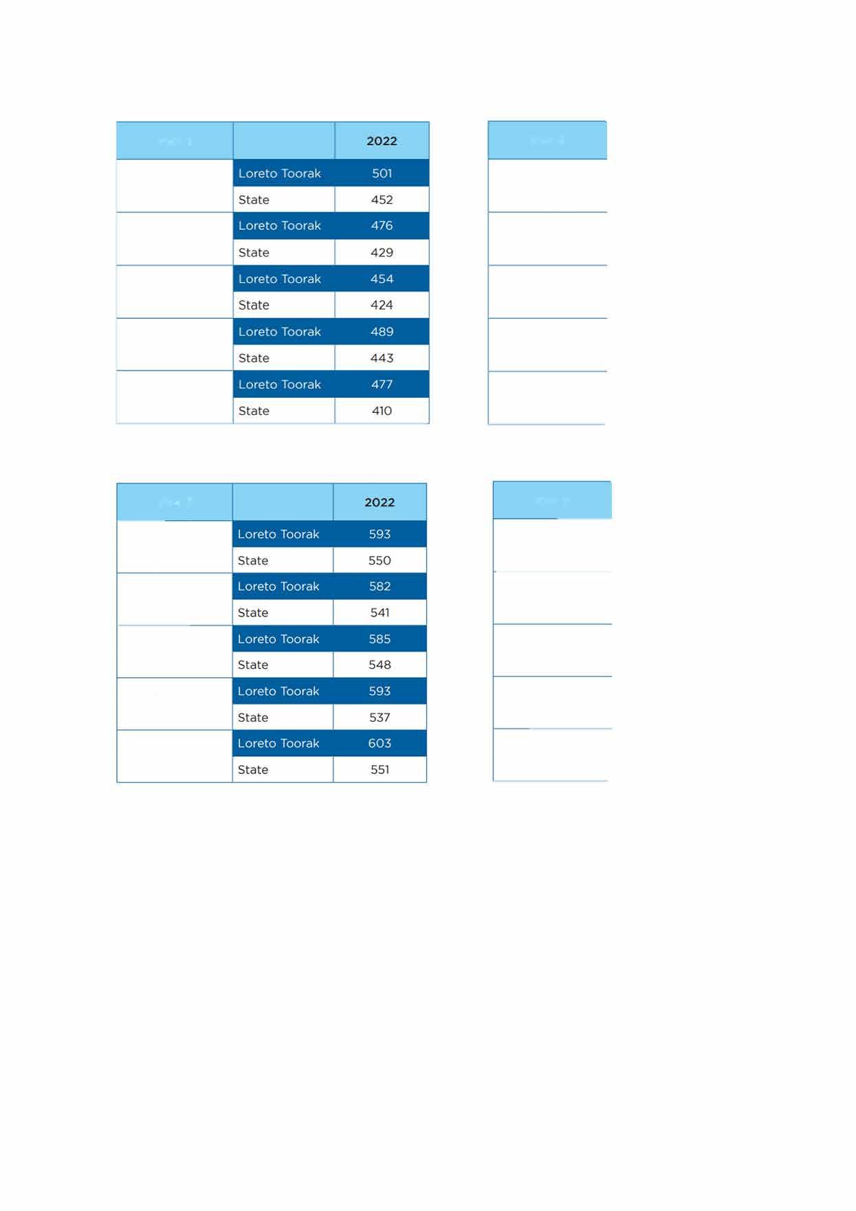 • Continued performance as one of Victoria’s leading Catholic schools. See bar graphs below (Loreto Toorak’s results are indicated in blue)