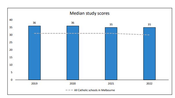 In 2022, the School achieved excellent results in a wide range of studies from various faculty areas. This was evidenced by a significant number of subjects where the students attained a median study score of 35 or above, reflecting the School's commitment to academic excellence across all areas of study and enviable reputation as one of the highest performing Catholic schools in Victoria.