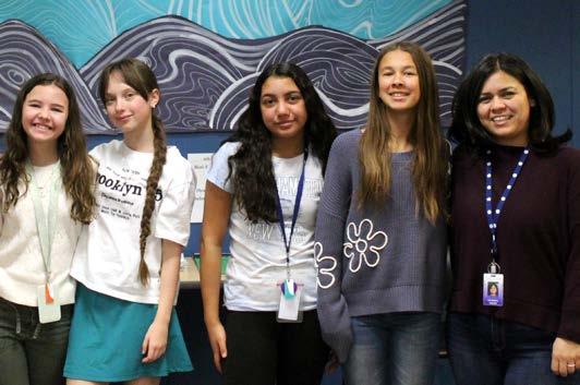 Christina Garcia CoL, far right, spends time with students in her middle school advisory group. Photo courtesy St. Mary's Academy