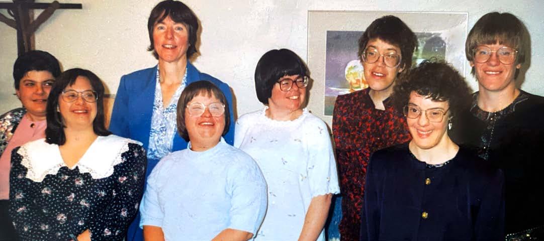 Gathering for a photo at Bridge Community in the 1990s are, back row: Theresa, Maria, Linda and Shirleen; in front are Donna, Lisa, Kate and Mary.