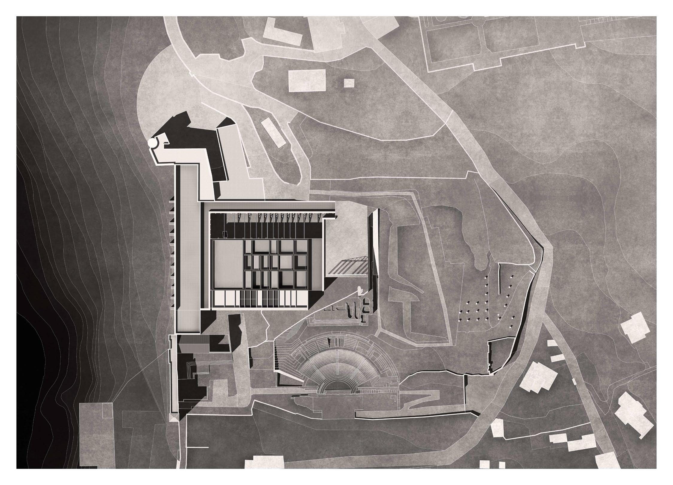 Il progetto proposto prevede la realizzazione di un teatro per 2000 spettatori e di un’antistante piazza pubblica. L’intento è fin da subito quello di “aprire” l’edificio alla città e metterlo in dialogo, da una parte con il fiume e dall’altra con lo spazio esterno piazza che è in grado di ospitare manifestazioni all’esterno grazie alla possibilità del proscenio
