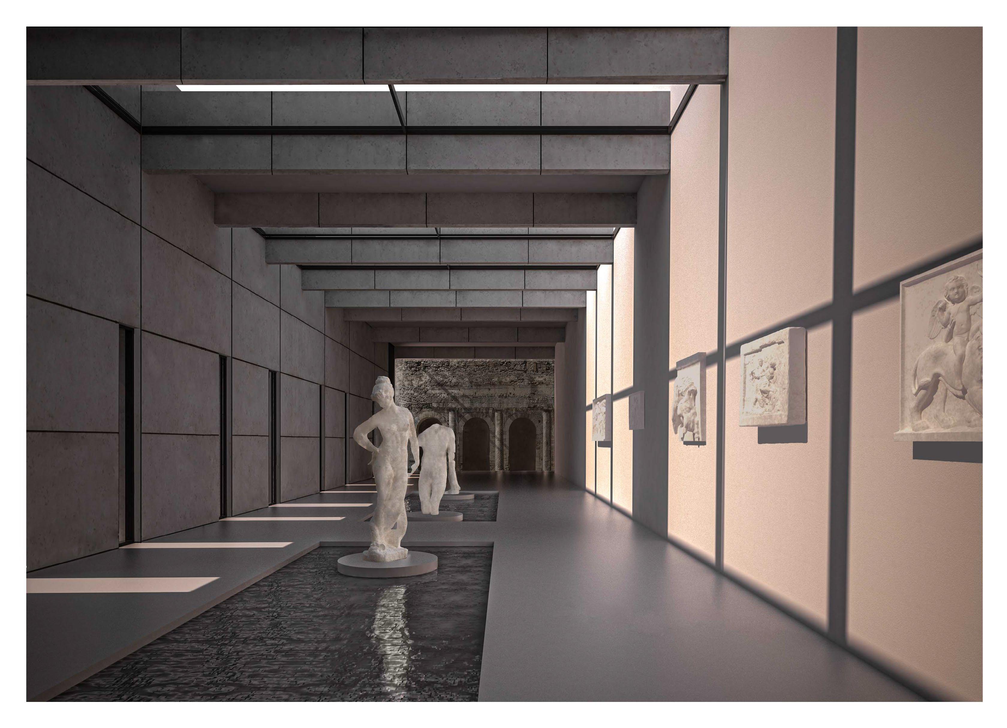 Il progetto consiste in una riqualificazione della ex cartiera di Tivoli che sorge direttamente sui resti del Santuario di Ercole Vincitore. Il tentativo è stato quello di non intaccare i resti romani e di mantenere l’impianto generale della cartiera, la cui rovina è una vera e propria testimonianza di archeologia industriale. I due corpi sono stati, però, chiaramente distinti, con lame di vetro che rendano immediatamente leggibili le stratificazioni storiche.