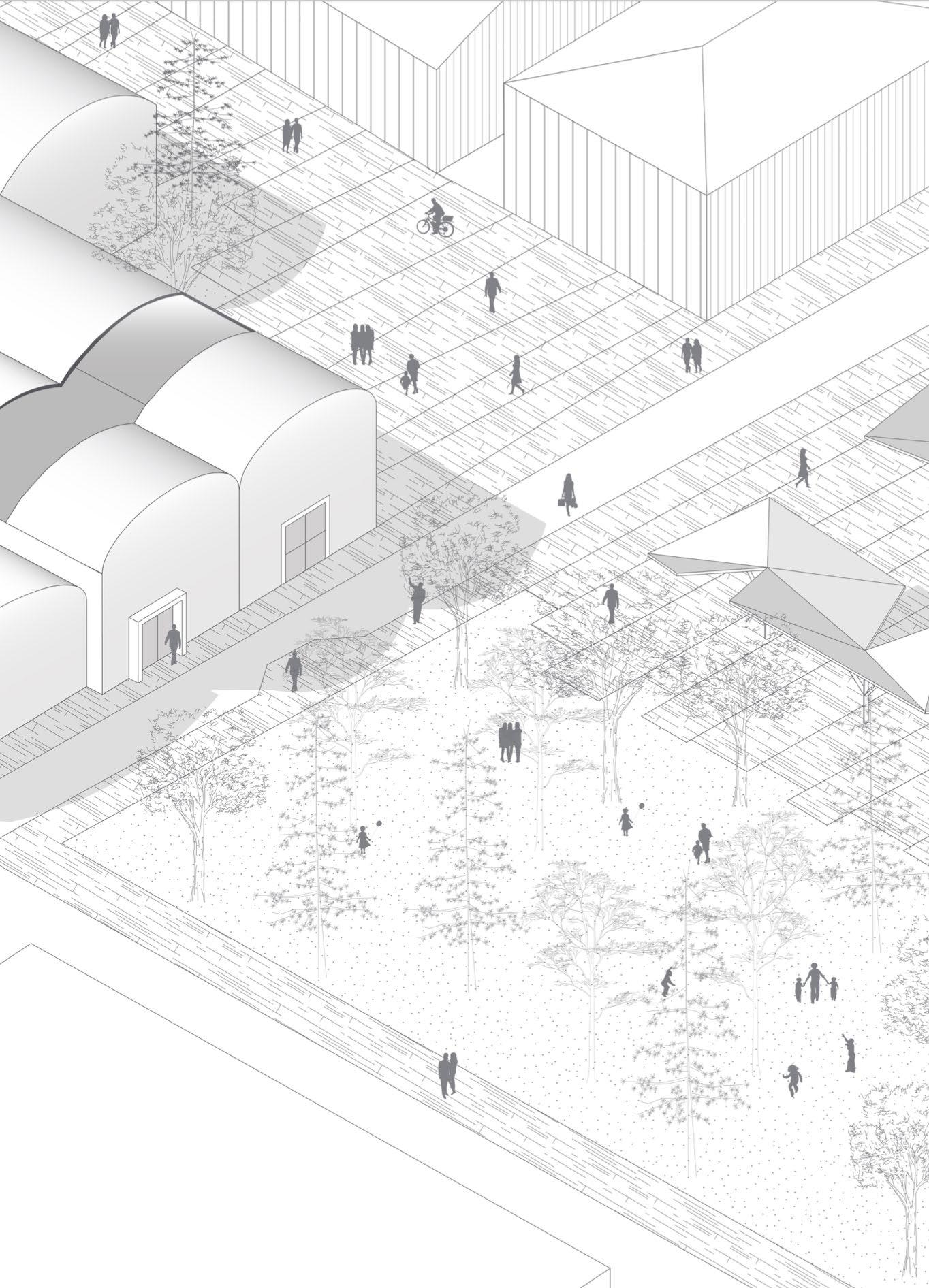 antistante il capannone. Questa piazza sarà dotata di una pavimentazione rinnovata, spazi verdi e un sistema di coperture che permetteranno lo svolgimento di mercati e diverse manifestazioni artistiche.