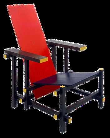 Desde sus inicios, Gerrit Thomas Rietveld (Utrecht, 1888-1964) abrió nuevos caminos en el diseño de mobiliario e interiores. Siguiendo los postulados de De Stijl, un movimiento artístico que preconiza la unión de las artes y aboga por las formas simples y los colores primarios, en 1918 idea una silla sin precedentes, la Red/Blue, con una estructura de listones y tablas de madera de marcada geometría, pintada con una combinación de negro, rojo, amarillo y azul que la hacen parecer un cuadro de Mondrian.