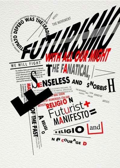 Eneldiseñográfico,elfuturismose impuso mediante el uso de tipografías con un formato más expresivo que convencional. Esta idea de estructura expresiva también se aplicó a las composicionespoéticas.