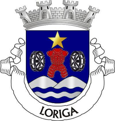 negro em fundo de . Ao centro e em chefe uma estrela de ouro Em campanha, monte de dois cômoros de prata, movente dos ancos da ponta, carregado de gémina ondada de azul. A mural é de de O listel é de legenda “LORIGA”. A bandeira é esquartelada de branco azul, cordões borlas de de azul. Haste lanças douradas. anos, instituições que representam Loriga, usaram, e ilegalmente freguesia, escudo partido, primeira Cruz de Cristo, segunda vista da Serra da Estrela sobre engenho