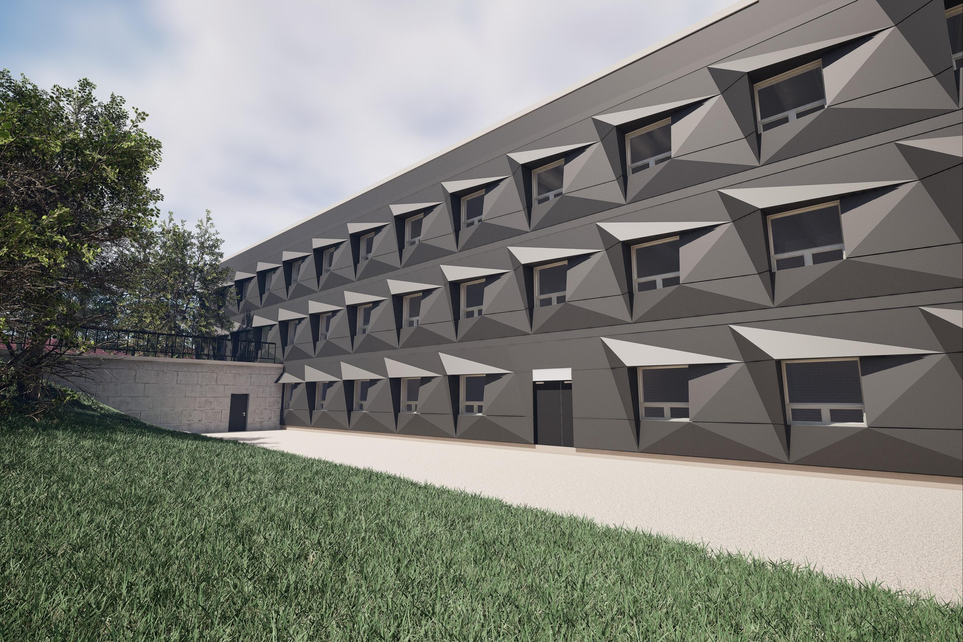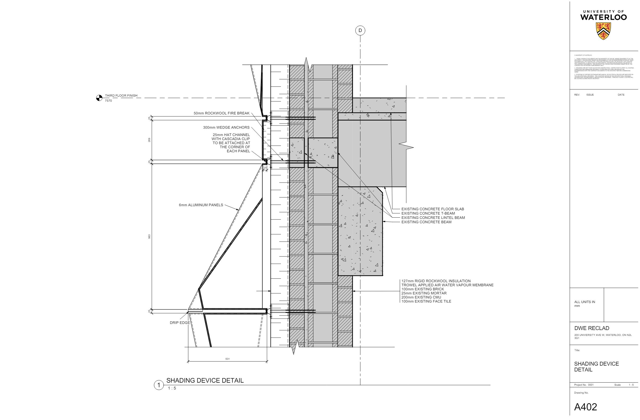 The reclad of DWE, the first engineering building built on the University of Waterloo campus, aims to improve thermal performance and occupant comfort of the building while maintaining an attractive The design of the shading device blends in seamlessly with panel facade, creating a functional and visually appealing design is an overclad of the existing structure, while integrating cient wall.