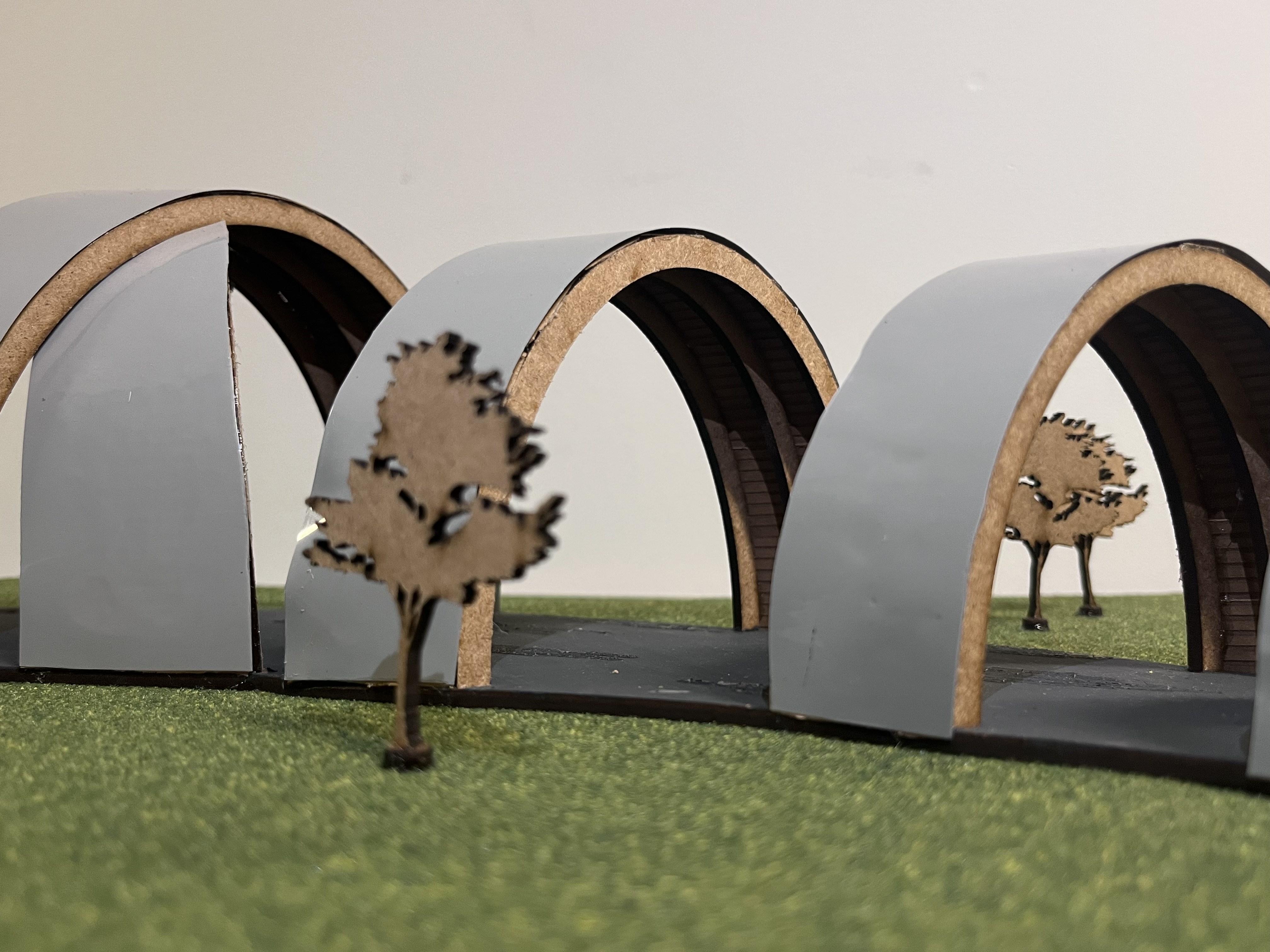 The Loophole, situated in Waterloo Park, aims to unite three secluded areas within the park: the soccer fields, the arboretum and the river. The seven loops that comprise this pavilion create an appealing pathway to connect these areas of the park. Built using glulam wood and covered with standing seam metal roofing, the pavilion offers shelter from the sun and rain and provides a unifying area to enjoy the park.