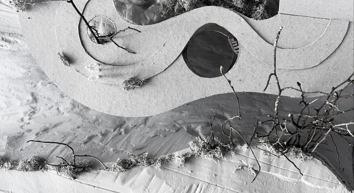J’ai eu l’occasion de réaliser plusieurs maquettes de principes minimalistes se rapportant à des architectures qui pour certaines nous étaient imposées (page 30) . Nous avons pu réaliser celles des références utilisées pour la rédaction de notre article (page 43). J’ai donc choisis de mettre en avant leur rapport au site, ici naturel (principe de moindre impact sur le paysage).