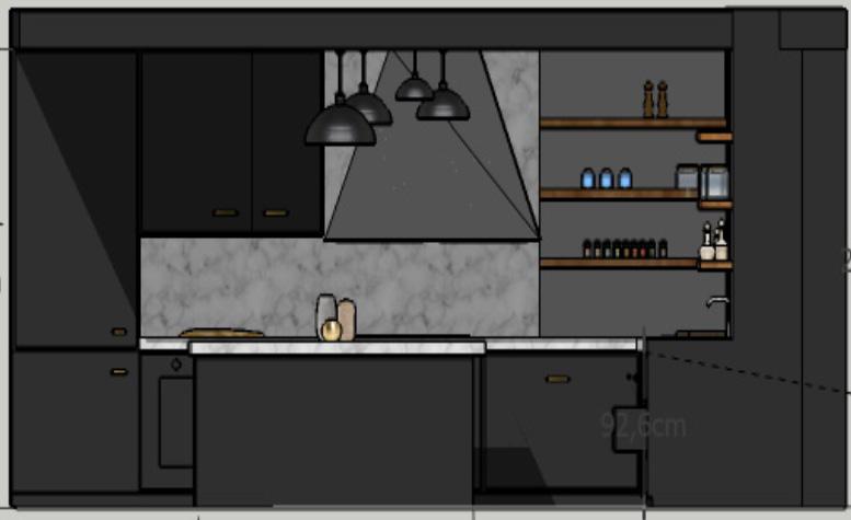 Lors de notre arrivée en première année, nous nous sommes familiarisés avec le logiciel Sketchup pour la conception de nos futurs projets. Pour cela, nous pouvions modéliser librement un espace cuisine, étant noté par ailleurs sur la qualité et le détail de notre réalisation. J’ai donc réalisé cette modélisation en effectuant par ailleurs un léger travail de lumière sur photoshop, pour un effet plus réaliste.