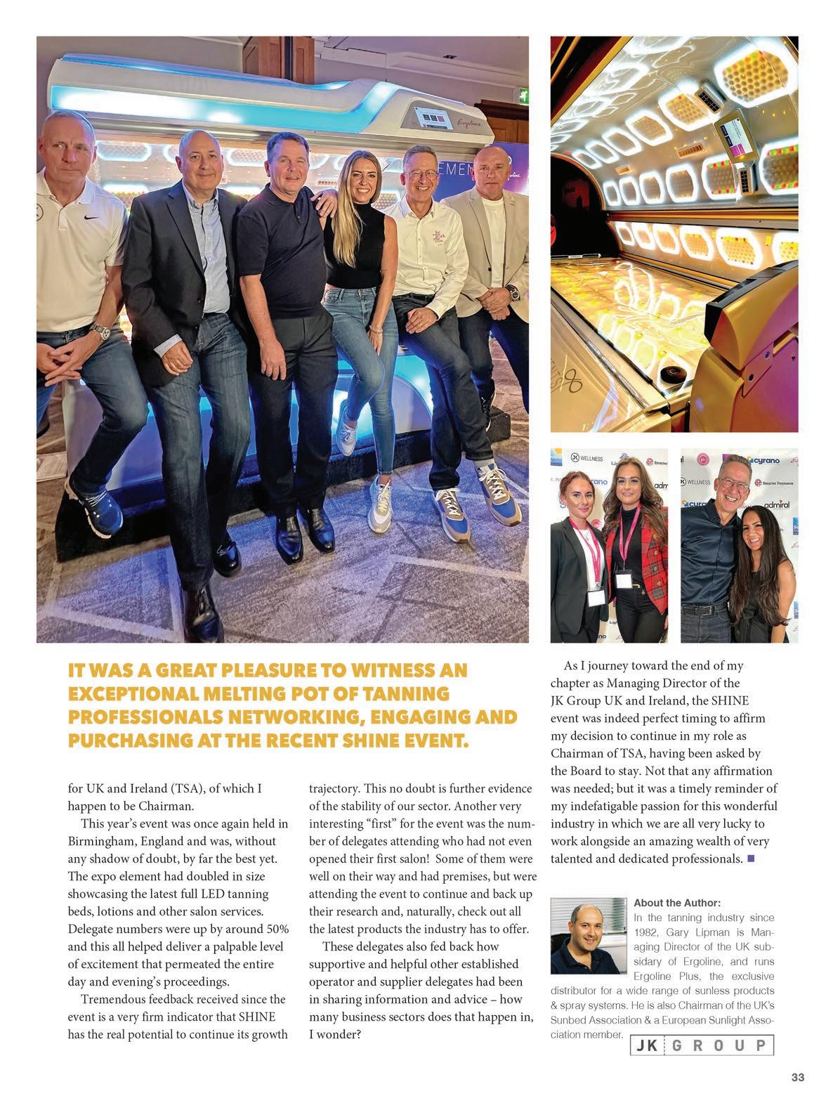 In the tanning industry since 1982, Gary is Managing Director of the UK subsidiary of Ergoline, and runs Ergoline Plus, the exclusive distributor for a wide range of sunless products and spray systems. He is also Chairman of the Media Committee for the UK’s Sunbed Association & a European Sunlight Association member.
