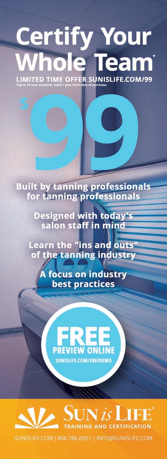 Sun is Life® is the industry’s leading tanning salon operator training program. Developed by industry professionals for industry professionals. We offer you and your staff the tools to elevate your team’s level of professionalism, and increase your confidence in both providing and promoting responsible tanning.