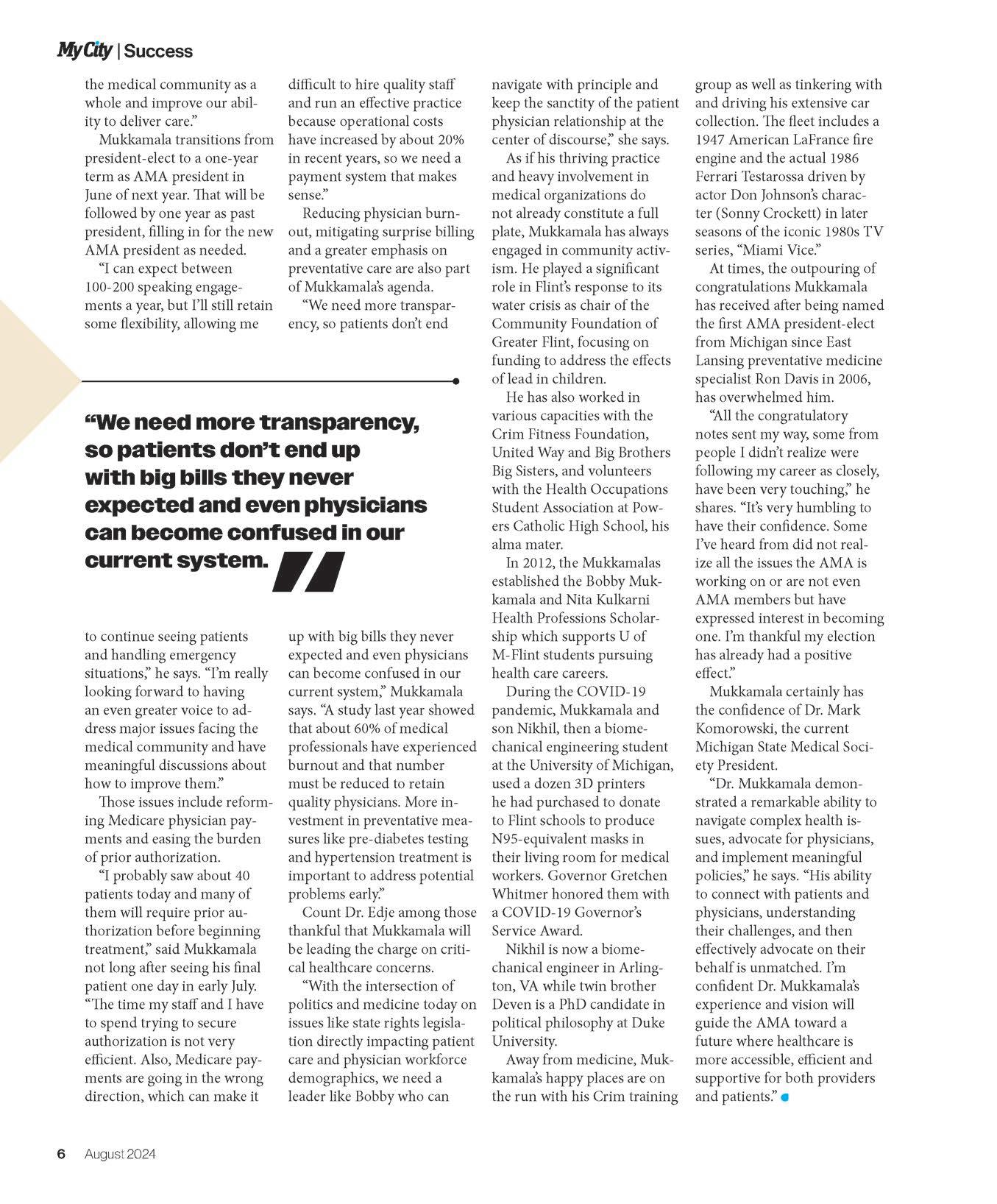 We never seem to have a shortage of stories to share about local people achieving remarkable things, and even reaching life goals. Dr. Bobby Mukkamala was recently chosen as president-elect of the American Medical Association. He has my sincerest congratulations and best wishes for success in his important new role in the medical community. Read about his journey on pg. 4.