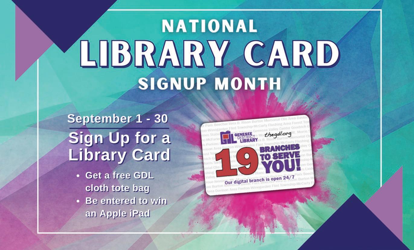 Genesee District Library (GDL) has a whole world of education and entertainment, and it’s all free with your library card: eBooks, audio books, movies, music, magazines, TV series, comics and graphic novels are available digitally, in the comfort of your home. With a library card, there’s a wealth of free entertainment and resources available to you. You can also stop by one of the 19 branches and check out DVDs, video games, CDs, large-type books, magazines, games, toys and books.