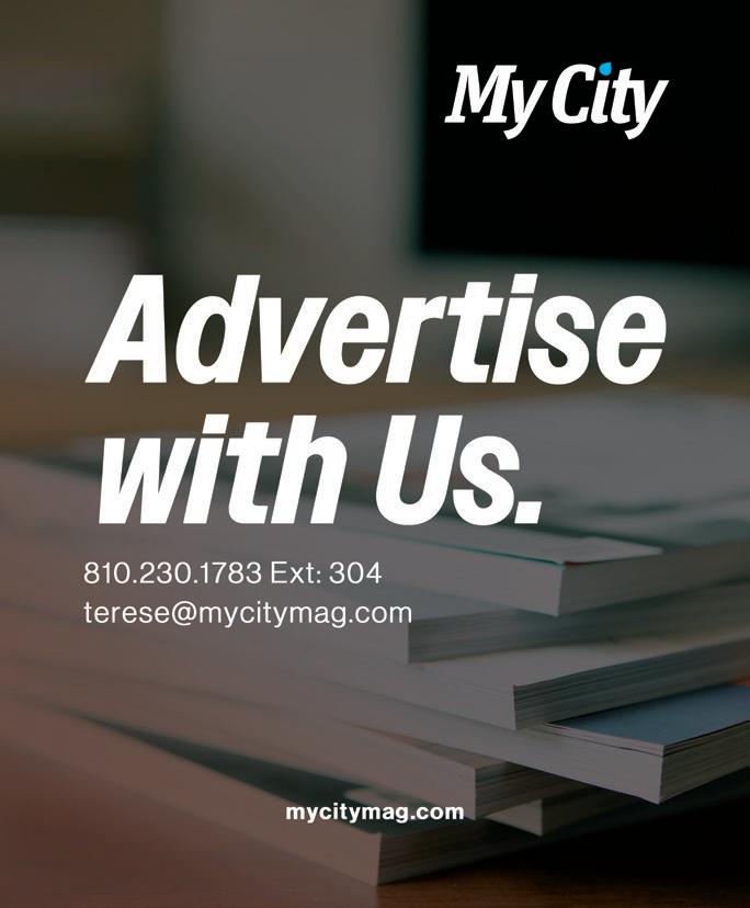 ISSN#1559-3436 is published monthly by My City Magazine, Inc., 14165 Fenton Rd. Fenton, MI 48430. Canadian Mail Agreement #41971515. For back issues, inquire for availability. Editorial Correspondence: Address product information and inquiries to: Editorial Department, My City Magazine, 14165 Fenton Rd., Fenton, MI 48430, phone 810.230.1783. To authors, photographers and people featured in this publication: All materials, articles, reports and photographs in this publication are the property of My City Magazine and cannot be used without written permission. The opinions and conclusions recited herein are those of the respective authors and not of My City Magazine. My City Magazine is not responsible for returning unsolicited manuscripts, photographs or other materials. Every effort will be made however, to return rejected manuscripts, etc., if they are accompanied by sufficient firstclass postage, but the Publisher will not be responsible for any loss of such material.
