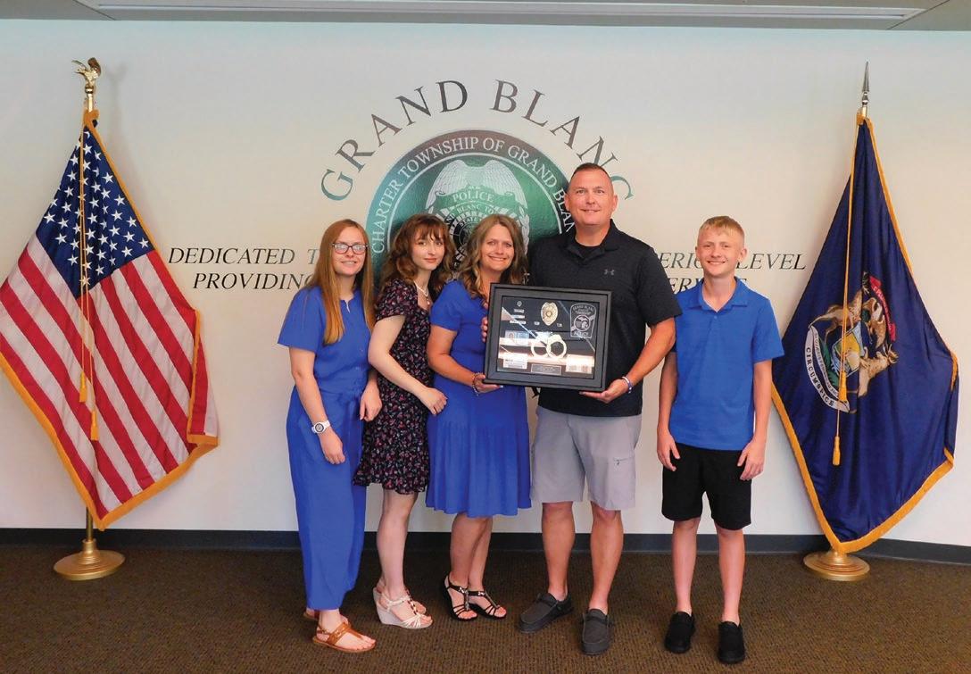 “Law Enforcement is a tough profession as we see so many critical incidents throughout our careers,’ Renye shared. “Add to that long shi s, working weekends, holidays and nights – it takes a strong family to support an o cer. I cannot thank O cer Wolschleger’s entire family enough, especially his wife JaNiece, for her support and understanding as he sacri ced a lot of his family time to be dedicated to our department and community. Dan was everything we look for in a Grand Blanc Township o cer, exhibiting our core values day in and day out. Everyone at the Department wishes him and his family a happy retirement.”