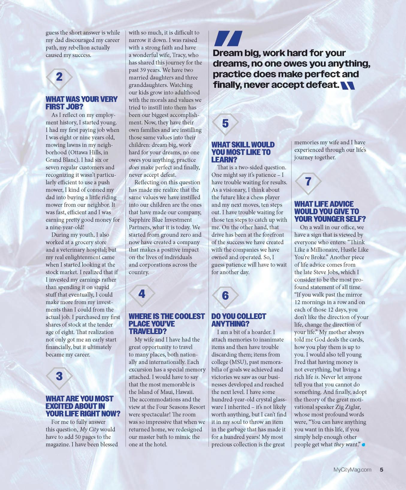 First, we’re excited to highlight my good friend, Fred Hensler, in our “7 Questions” feature. Fred has been chosen “Favorite Financial Advisor” every year since we launched the City’s Choice Awards. Let’s just say, Fred didn’t hold back! I’m sure you’ll find his answers as fascinating as I did.