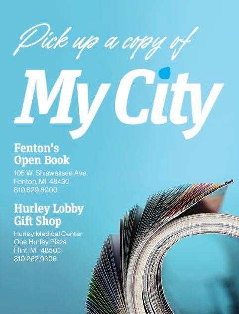 ISSN#1559-3436 is published monthly by My City Magazine, Inc., 14165 Fenton Rd. Fenton, MI 48430. Canadian Mail Agreement #41971515. For back issues, inquire for availability. Editorial Correspondence: Address product information and inquiries to: Editorial Department, My City Magazine, 14165 Fenton Rd., Fenton, MI 48430, phone 810.230.1783. To authors, photographers and people featured in this publication: All materials, articles, reports and photographs in this publication are the property of My City Magazine and cannot be used without written permission. The opinions and conclusions recited herein are those of the respective authors and not of My City Magazine. My City Magazine is not responsible for returning unsolicited manuscripts, photographs or other materials. Every effort will be made however, to return rejected manuscripts, etc., if they are accompanied by sufficient firstclass postage, but the Publisher will not be responsible for any loss of such material.