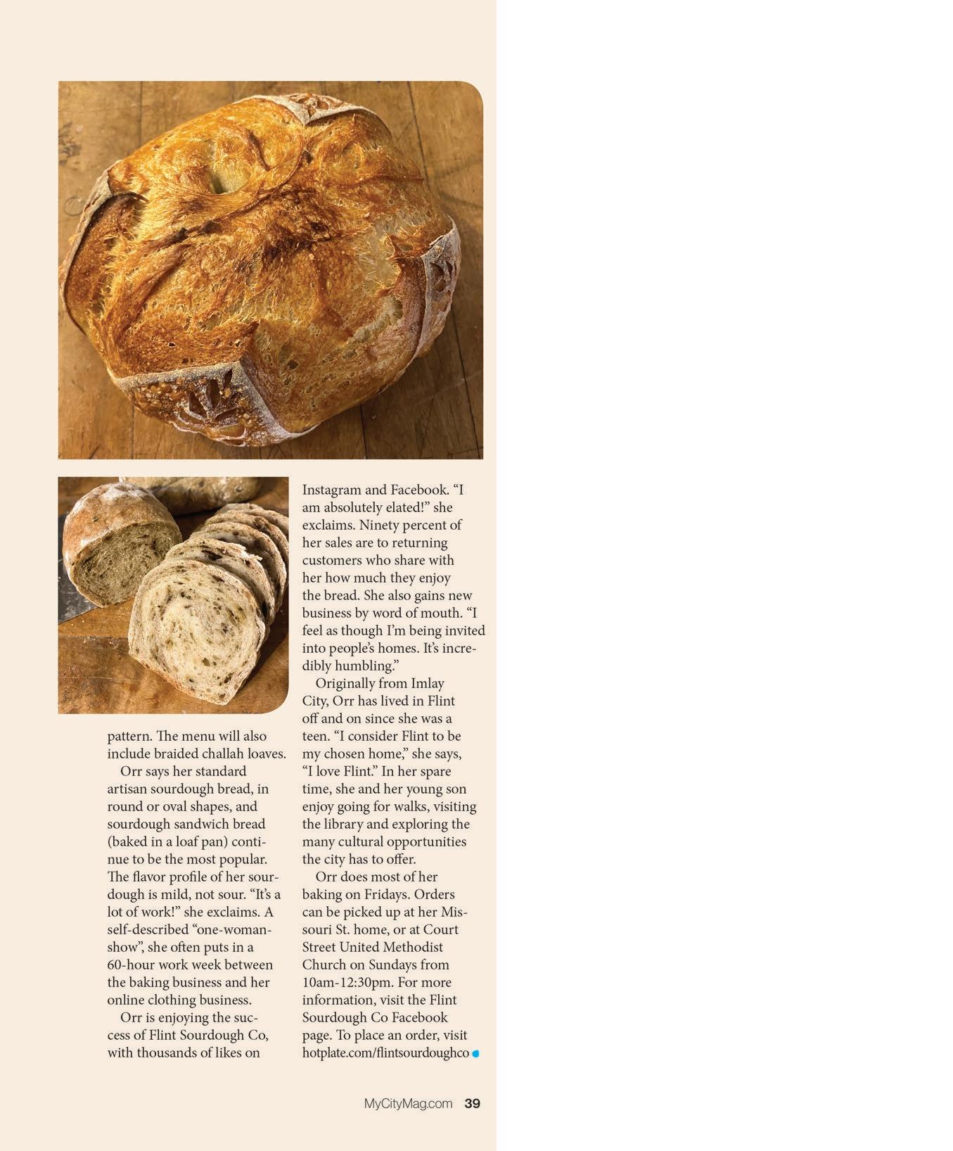 ISSN#1559-3436 is published monthly by My City Magazine, Inc., 14165 Fenton Rd. Fenton, MI 48430. Canadian Mail Agreement #41971515. For back issues, inquire for availability. Editorial Correspondence: Address product information and inquiries to: Editorial Department, My City Magazine, 14165 Fenton Rd., Fenton, MI 48430, phone 810.230.1783. To authors, photographers and people featured in this publication: All materials, articles, reports and photographs in this publication are the property of My City Magazine and cannot be used without written permission. The opinions and conclusions recited herein are those of the respective authors and not of My City Magazine. My City Magazine is not responsible for returning unsolicited manuscripts, photographs or other materials. Every effort will be made however, to return rejected manuscripts, etc., if they are accompanied by sufficient firstclass postage, but the Publisher will not be responsible for any loss of such material.