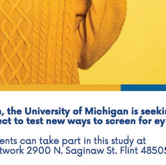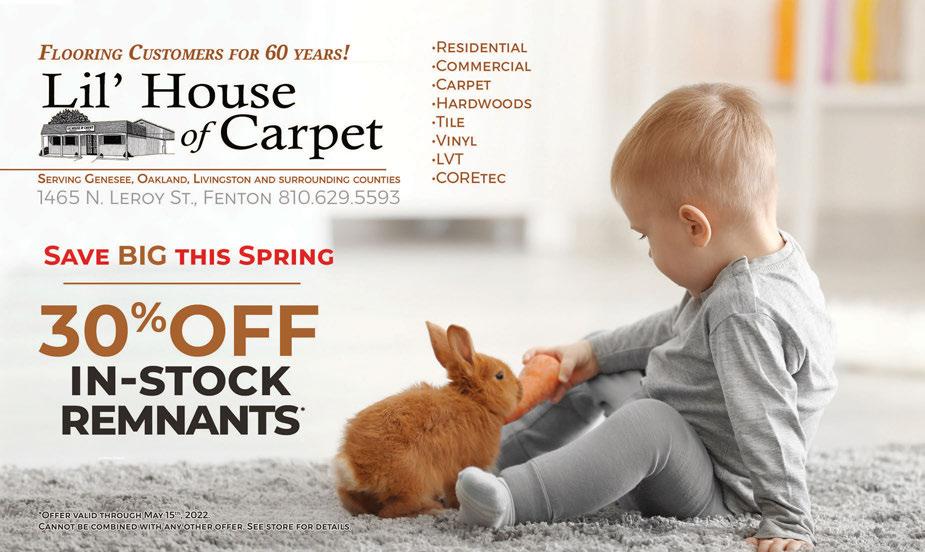 Another subject we always make plenty of room for is arts, and this issue is no exception. Actress Ava Cota of Linden has joined Flint’s Terry Crews as the only Genesee County natives to play leading movie roles during this century. Her inspiring story is on p.24. And we off er two features about superior local musical talent: the Genesee Wind Symphony is celebrating 40 years (p.30) and the Flint Symphony Orchestra’s Pr incipal Flutist Brandon LePage will be performing as the guest soloist at the concert this month (p.28). Th ere are so many opportunities for you to support local arts … they never disappoint!