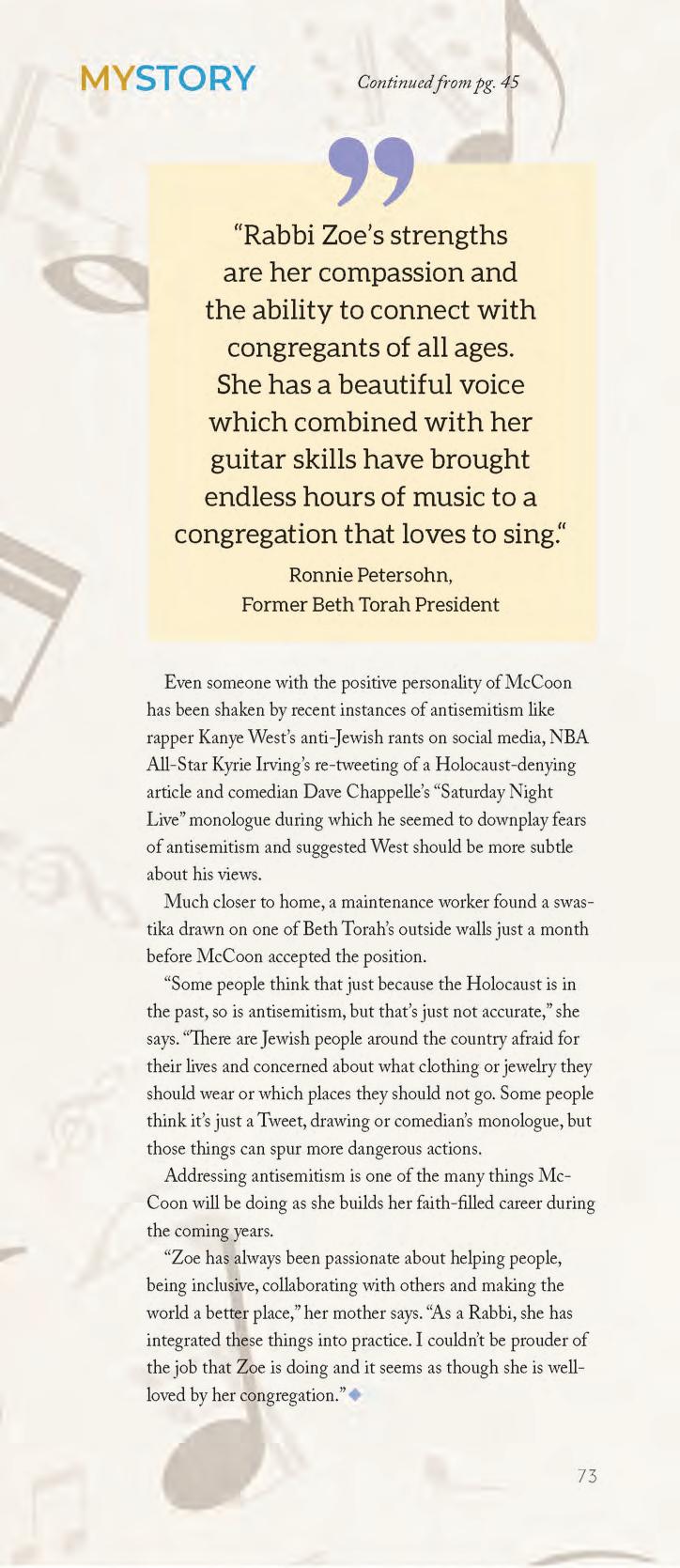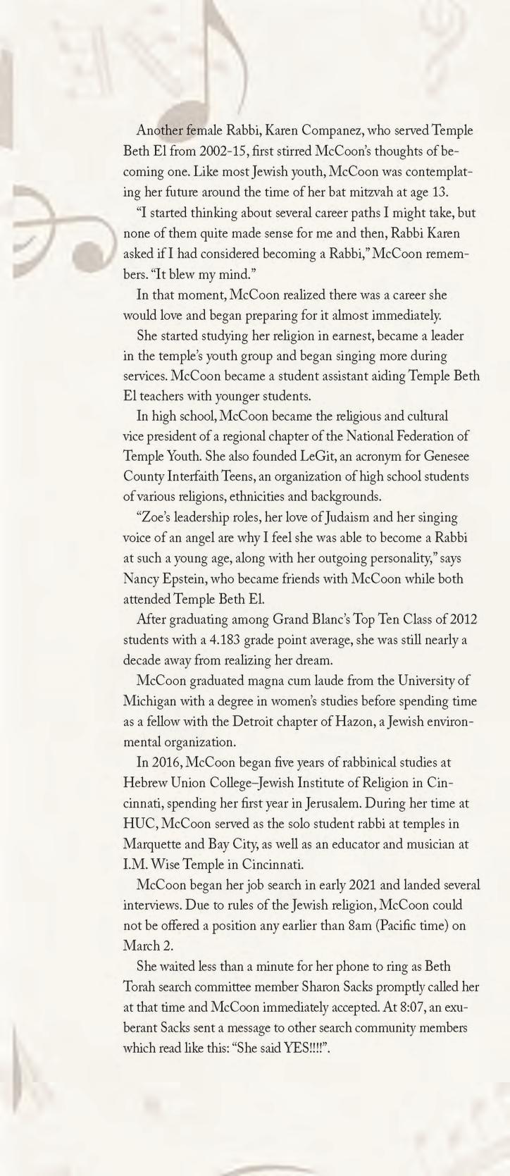 As always, this issue has great variety and depth of content that will be great to curl up and read while the snow falls. We have stories about two more women, both about the rewarding careers they were meant to pursue –one just beginning, and the other retiring. Read about a Grand Blanc native, Rabbi Zoe McCoon, who just began leading a congregation in California as one of only a handful of twenty-something Rabbis in the U.S. (p.42). And, recently retired Dr. Chery Wagonlander, an educator who pioneered the middle college concept in Michigan by founding Mott Middle College in 1991, shares her story on p.46.