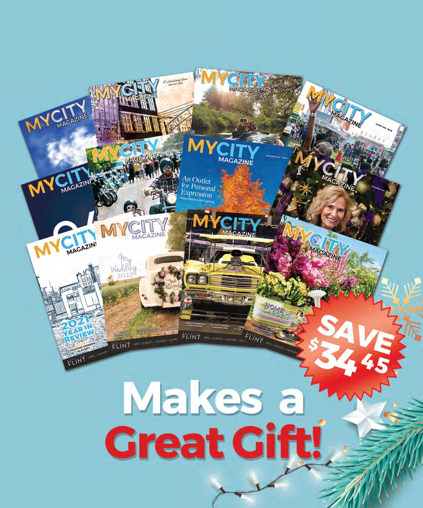 ISSN#1559-3436 is published monthly by My City Magazine, Inc., 14165 Fenton Rd. Fenton, MI 48430. Canadian Mail Agreement #41971515. For back issues, inquire for availability. Editorial Correspondence: Address product information and inquiries to: Editorial Department, My City Magazine, 14165 Fenton Rd. Fenton, MI 48430, phone 810.230.1783. To authors, photographers, and people featured in this publication: All materials, articles, reports and photographs in this publication are the property of My City Magazine and cannot be used without written permission. The opinions and conclusions recited herein are those of the respective authors and not of My City Magazine. My City Magazine is not responsible for returning unsolicited manuscripts, photographs or other materials. Every effort will be made however, to return rejected manuscripts, etc., if they are accompanied by sufficient first-class postage, but the publisher will not be responsible for any loss of such material.