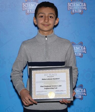 Students won over $10,000 dollars in cash prizes plus scholarships to Kettering University and UM-Flint (three, four-year full-tuition scholarships)! e top prize in the Senior category was $500 plus an all-expense-paid trip to the International Science & Engineering Fair in Los Angeles in May. e prize was re-named this year in honor of David C. Hill, a longtime FRSEF supporter who competed at the rst FRSEF in 1957 as a 7th-grader, winning the top prize in 1960 and 1962.