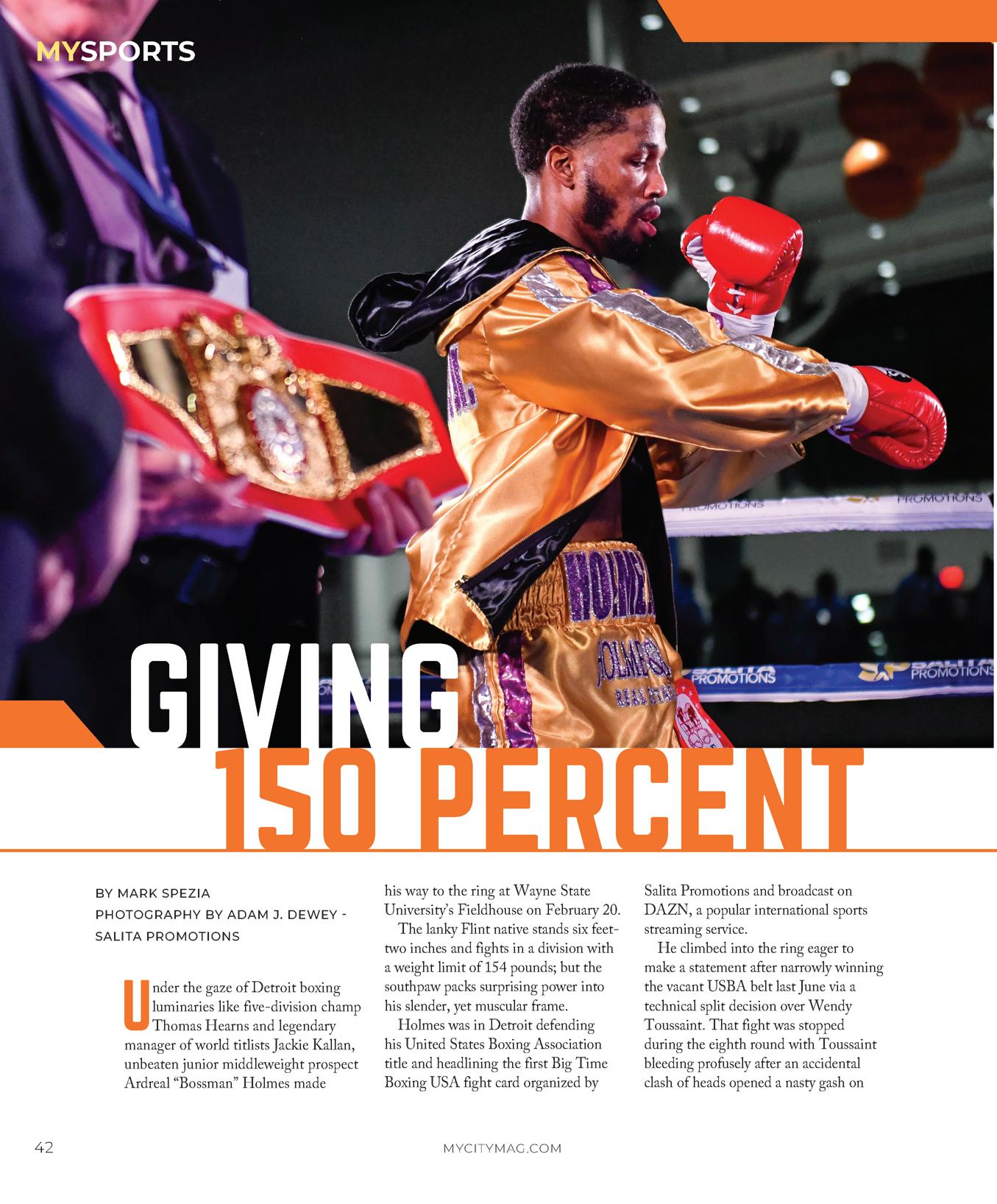 In our “Senior Living” section, we highlight local people in di erent stages of life’s journey; two who have experienced losing a life partner, and one celebrating her 100th trip around the sun. In a very exciting stage of his own journey is Flint’s Ardreal “Bossman” Holmes, well on his way to securing his spot in the city’s rich boxing history – that story starts on p.42.