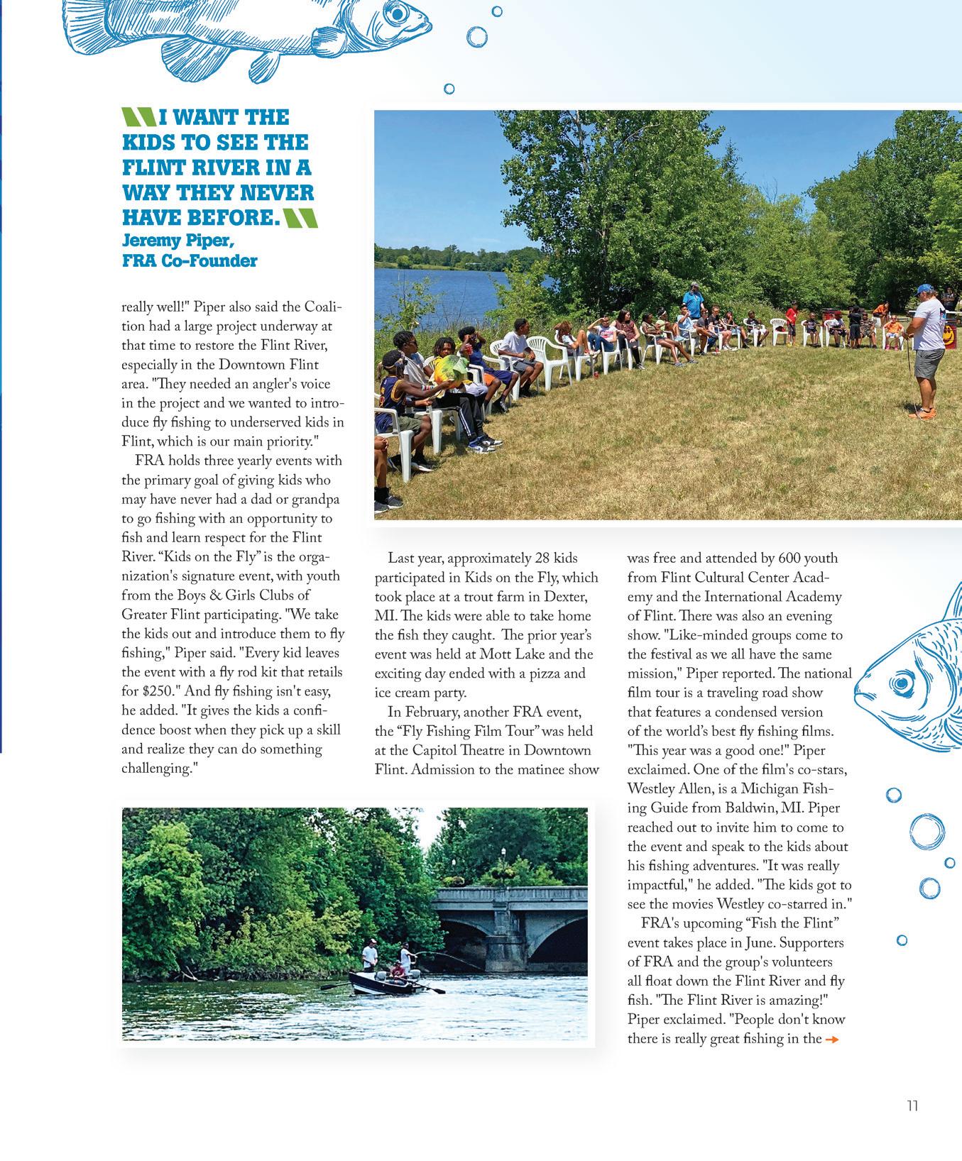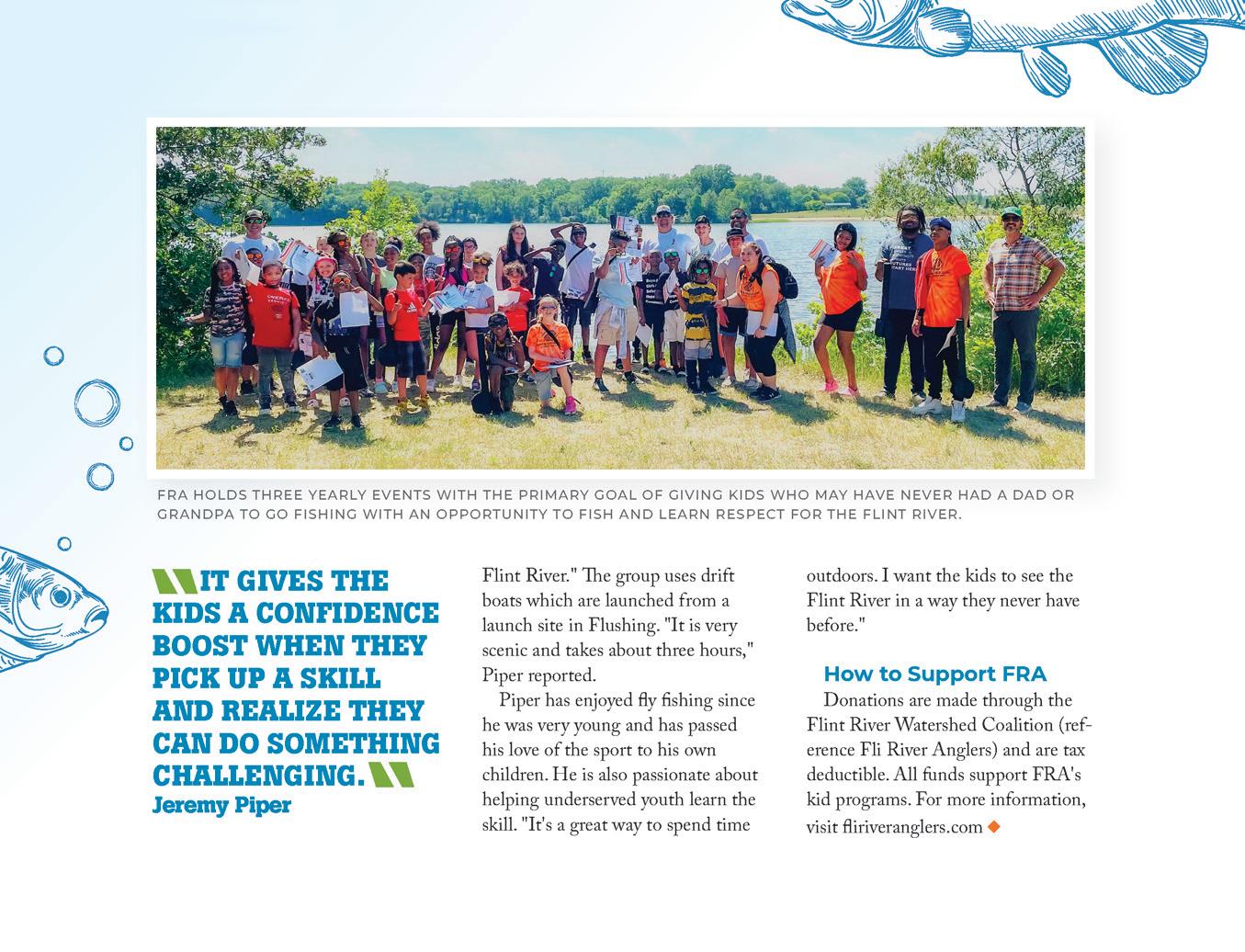 Gracing our cover is a photo of the fantastic mural that has been created for the Flint River Watershed Coalition (FRWC). It has been quite a process and involved artists from all over the world. e mural will be unveiled on May 9 – check out “My Arts” on pg. 32. And, it’s time for the Fli River Anglers to enjoy another season of great y shing on the Flint River. A chapter of the FRWC, they reach out to impact the lives of underserved local kids while furthering their mission to preserve the waterway. You can help them continue their good work – that story is on pg.10.