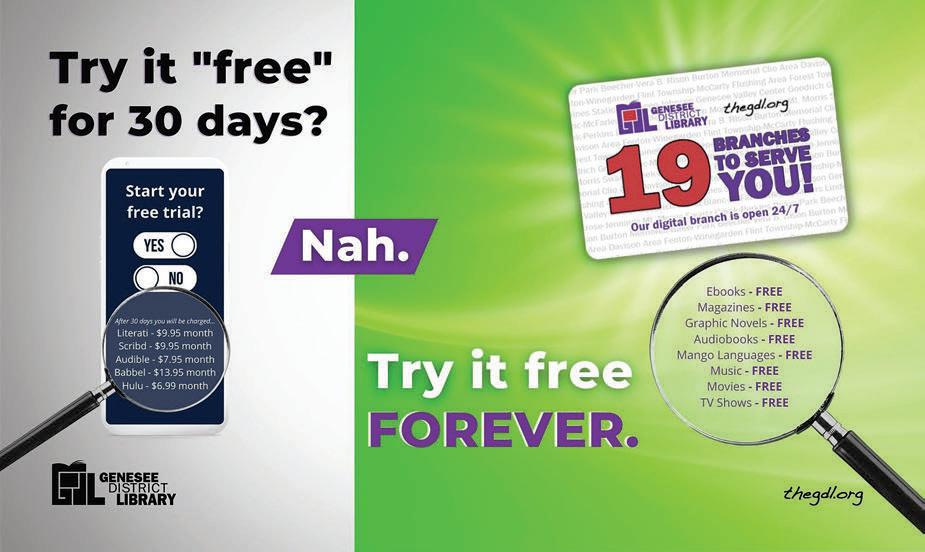 Every February, we’re proud to have this platform for celebrating Black History Month. e many ways it can be observed include learning about noteworthy black gures and their contributions, and learning about your community’s black women in particular. With our feature highlighting the Genesee District Library’s 2022 Black History Month Honorees, we check both boxes. Read about these inspiring individuals who were selected by the Black History Month Brunch Advisory Committee to receive awards this year (p.8).