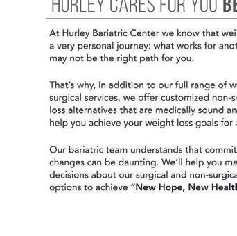 The Hurley Bariatric Center is located at 6140 Rashelle Dr., Flint 48507 and can be reached at 810.262.2330 or by going to hurleymc.com. The team also offers seminars that cover bariatric surgery and medical weight loss options. Sign up to attend a seminar, either online or in person, at: