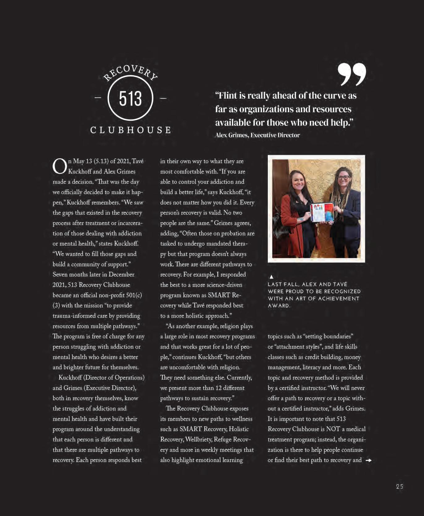 I don’t know how many “Outreach” pieces we’ve done over the past nearly ten years, but there seems to be an endless list of groups and individuals who wake up every day with a mission to help their fellow humans. They’re not getting rich; they enrich the lives of others. Reaching out to those struggling with addiction and mental health is 513 Recovery Clubhouse (p.24), a program founded by two people in recovery who are helping others find their paths to a better life. Their unique and successful approach is getting attention from other parts of the country – awesome!