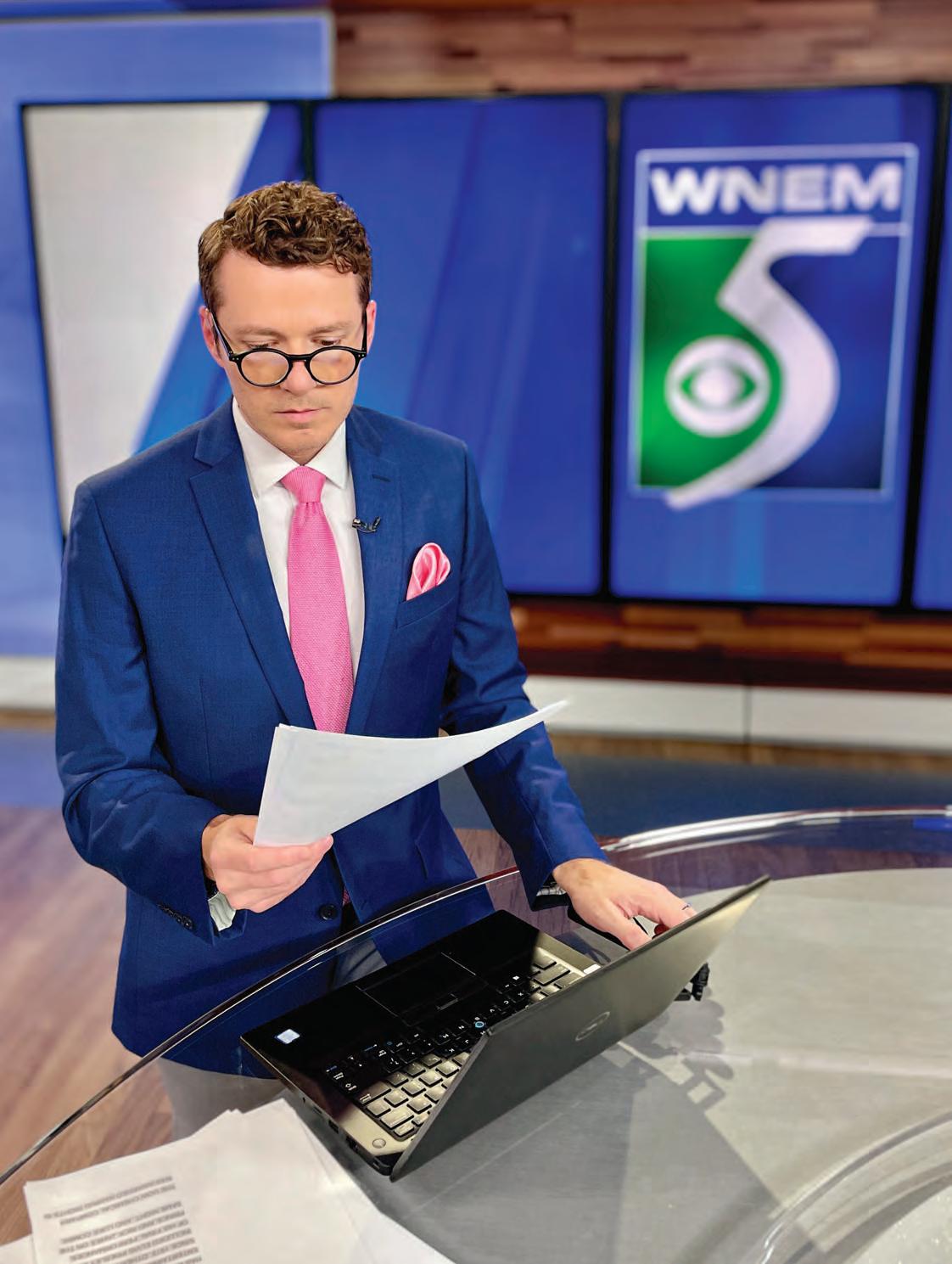 In his relentless search for truth, Custer has interviewed political candidates and celebrities (Cher stands out), exposed corruption, and provided hope and inspiration. (He even went skydiving. “Never again!” he laughs.) But what he is most proud of, even more than his numerous awards, are the people listed on his awards – those who trusted him to tell their stories and the truth he uncovered. “I exposed a small town police chief who was selling badges for $1,000 each and allowing the owners to get away with anything,” he says. “I have also spoken to a family that, during COVID, stayed outside their grandmother’s hospital window every day so she wouldn’t be alone at the end of her life.” ese stories give him strength and purpose. At the end of the day, it’s what means the most. e ability to present a story in an entertaining and informative way according to the facts is the essence of journalism. Custer advises that for those who love telling stories in a visual way and are passionate about nding the truth, a career in journalism can hold a rewarding future. “Make sure to never insert yourself into the story,” he cautions. “As a journalist, it’s never about you.” It’s been a long road and since 2016, David Custer has been presenting the truth at WNEM TV5. He has no plans to do anything else. “I live day to day and walk out of the station with a sense of accomplishment,” he smiles. “I’m content with who I am.” ®