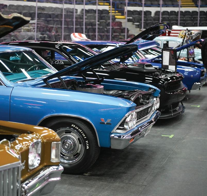 From the moment attendees stepped into the Dort Financial Center lobby, they were met with an awe-inspiring display of race memorabilia, classic and custom vehicles, muscle cars, hot rods, sports cars and trucks, with every corner of the arena – hallways, mezzanine and two main exhibition spaces – packed with automotive excellence.