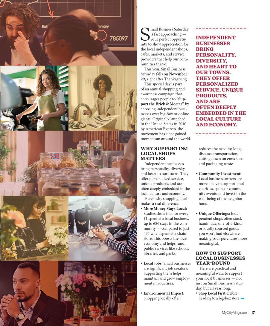My City also remains committed to supporting local businesses through our Support the Brick & Mortar pages. As we begin making shopping lists for family gatherings or holiday get-togethers with friends, it’s important to remember that our community’s small businesses employ local men and women who help take care of us all. Everything comes full circle in communities that support one another. When you spend money at an actual brick and mortar business, more of that money stays in the local economy—supporting jobs, funding local services through taxes, and helping nearby businesses thrive.